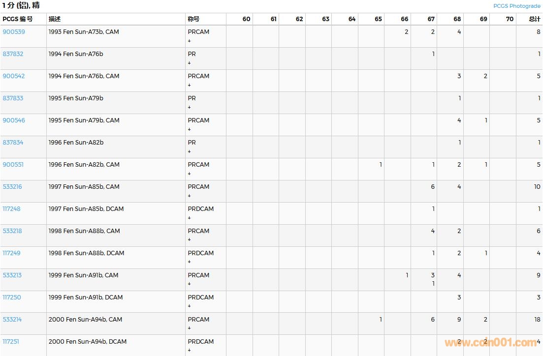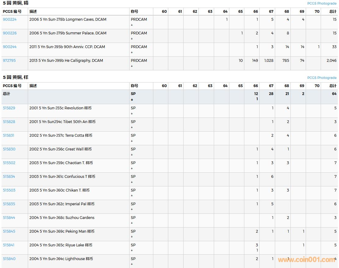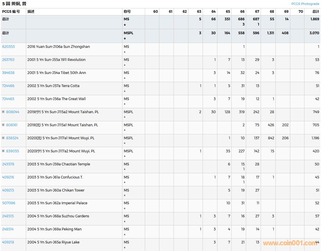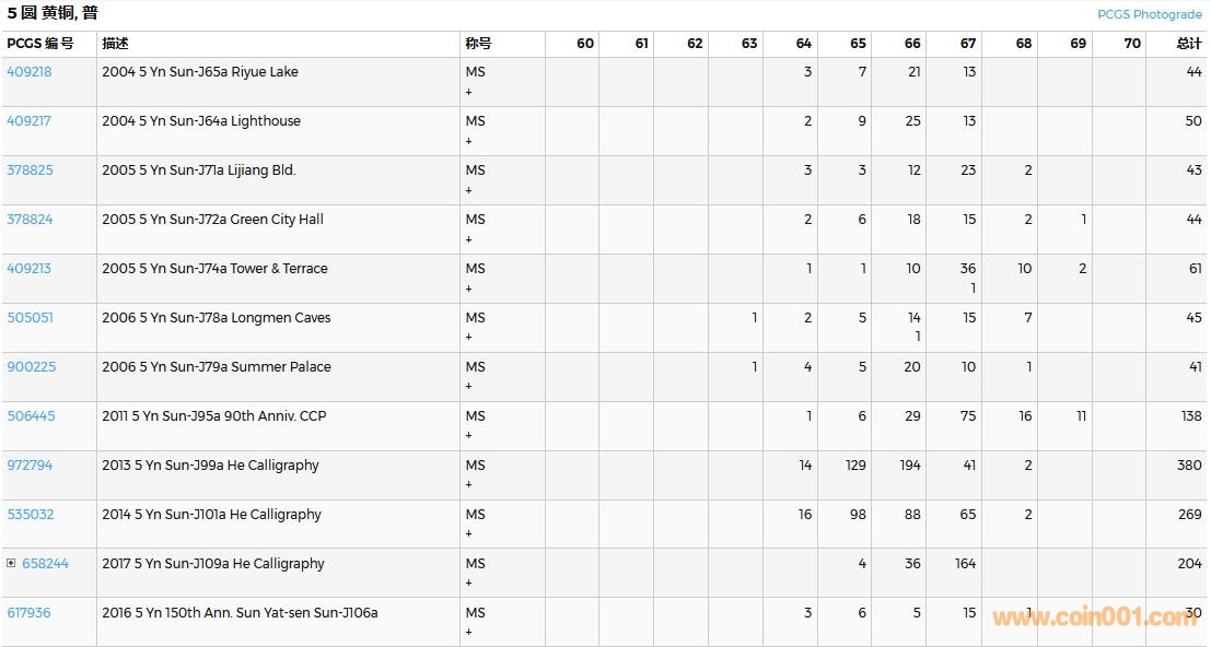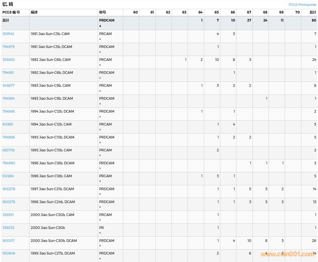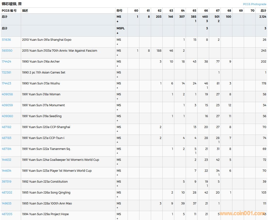 PCGS硬幣評級數(shù)量報告( ..