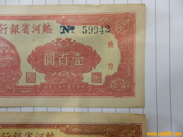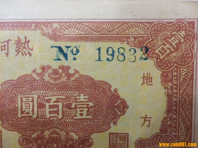 錯色幣-解放區(qū)熱河省銀行100元(老藏家珍藏)