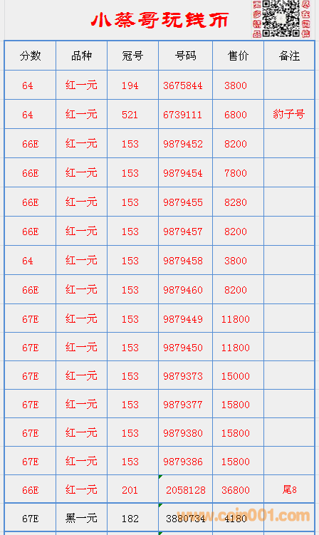 PMG66無(wú)47紅一元,尾8紅 ..