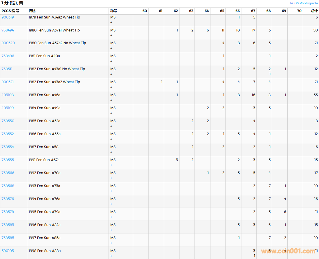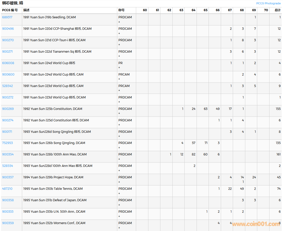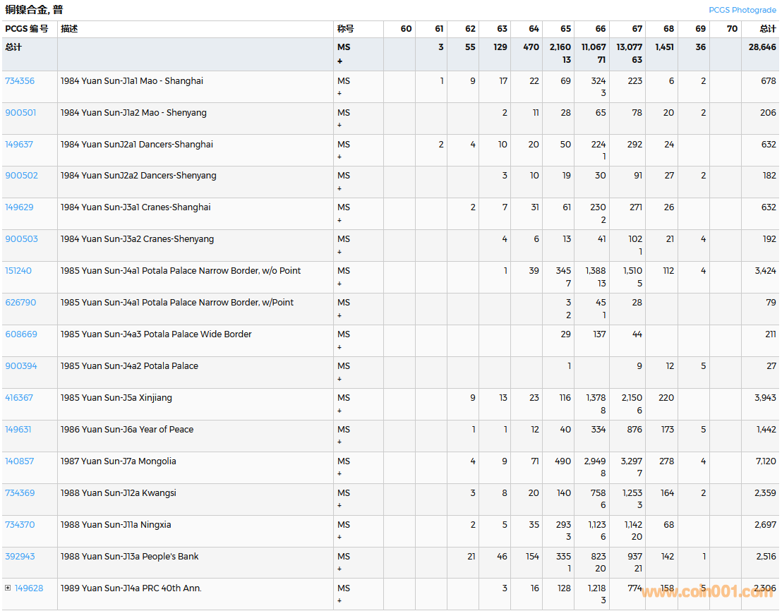 PCGS硬幣評級數(shù)量報告( ..