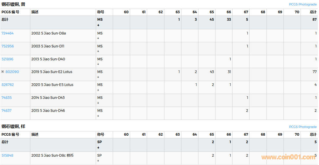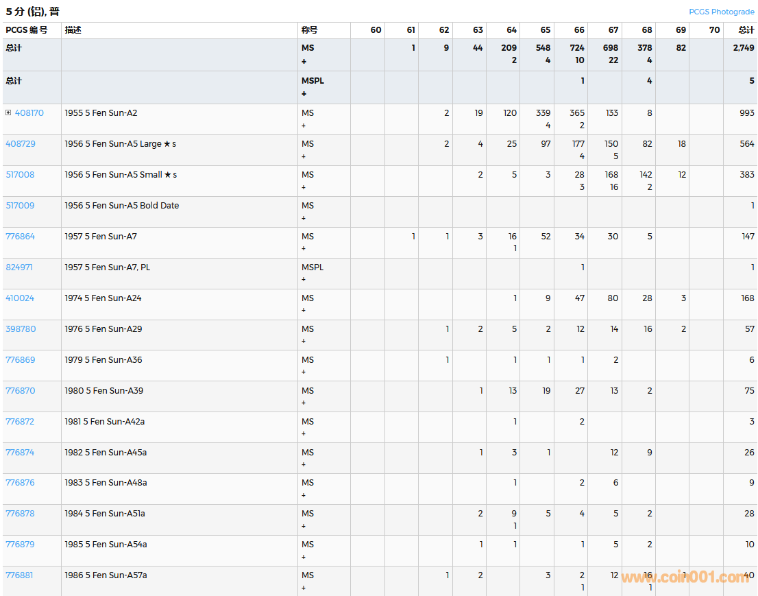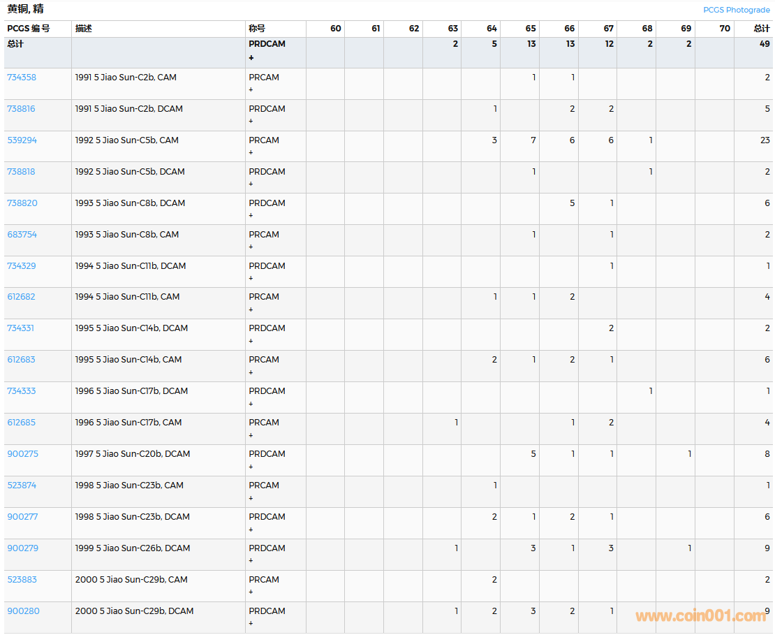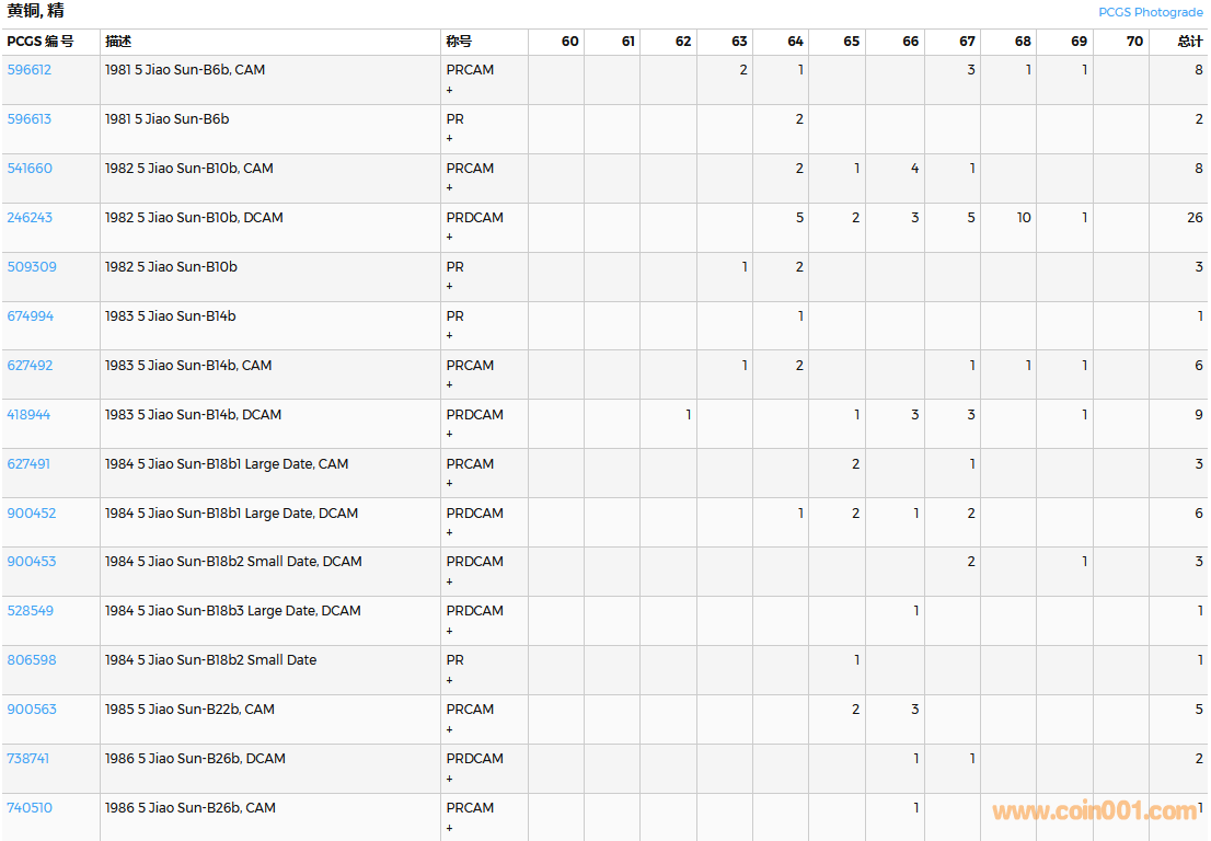 PCGS硬幣評級數(shù)量報告( ..