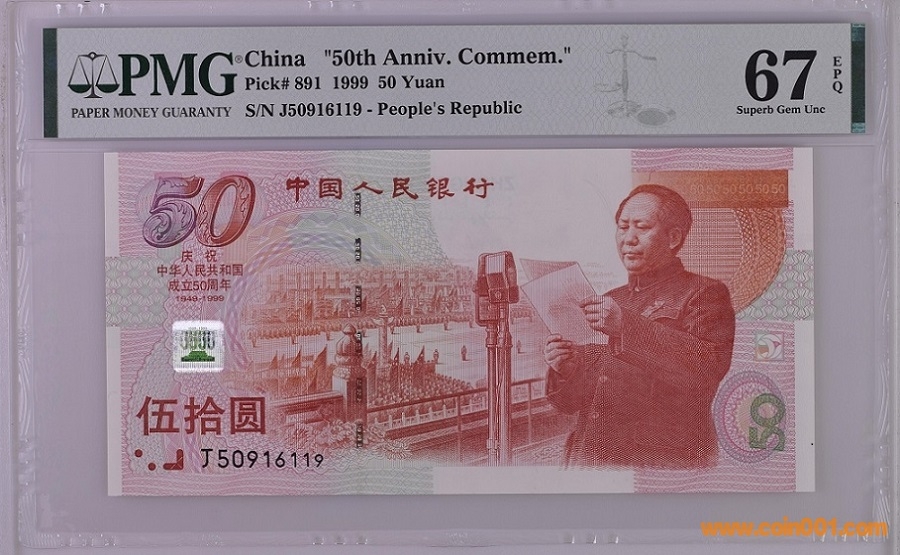 PMG67分建國(guó)鈔5張無(wú)347