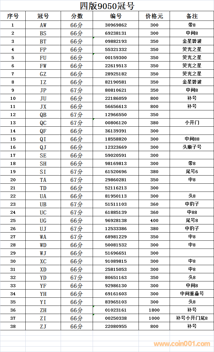 9號(hào)JP冠售出