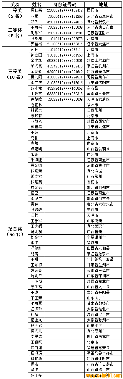 「“最受群眾喜愛的2011年中國貴金屬紀(jì)念幣”評選活動群眾參與獎獲獎名單」