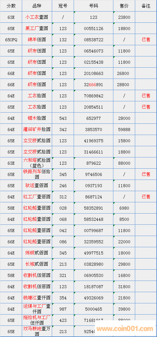 普通(精制)紀(jì)念幣交易