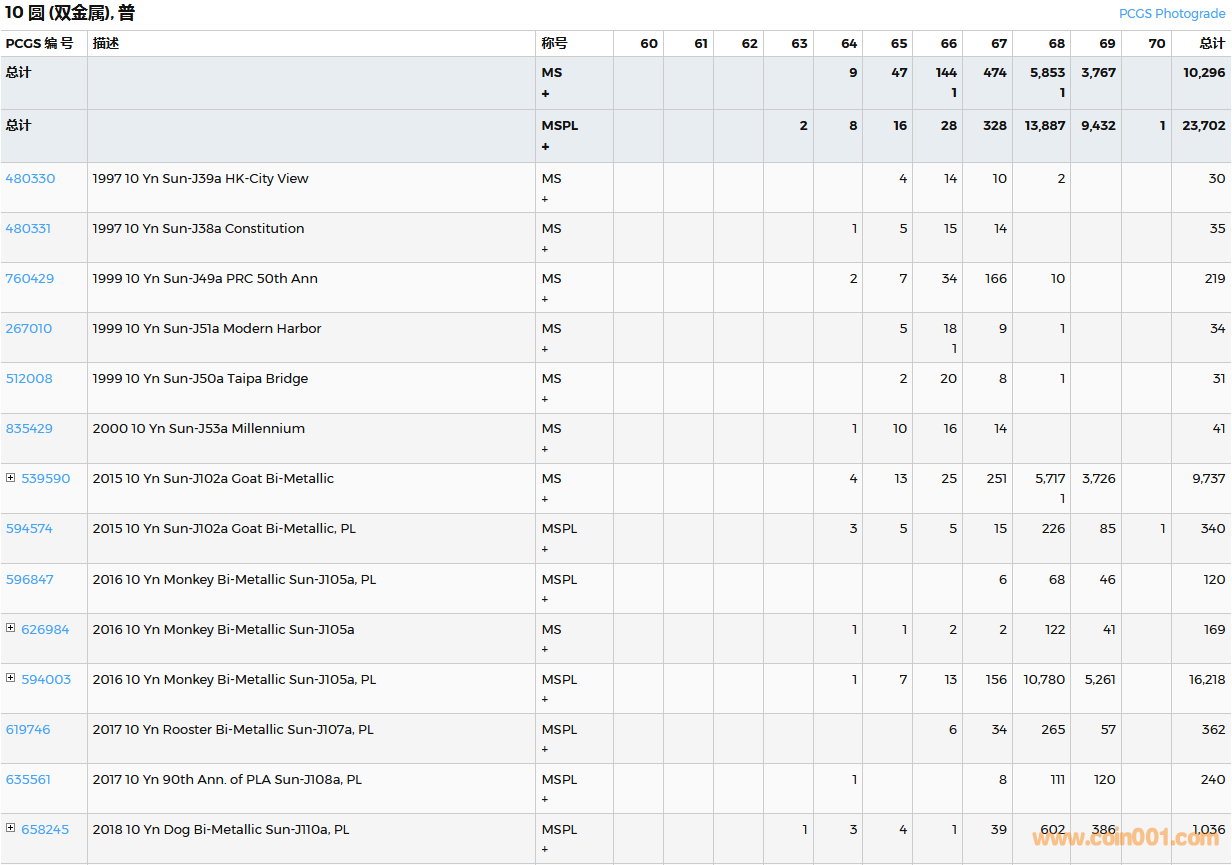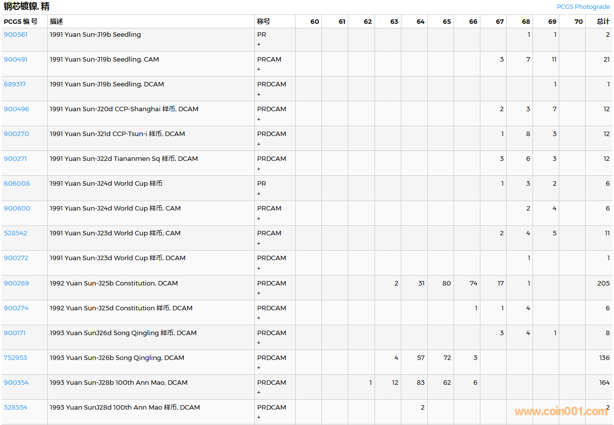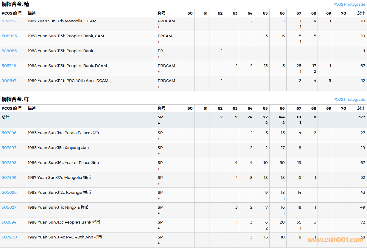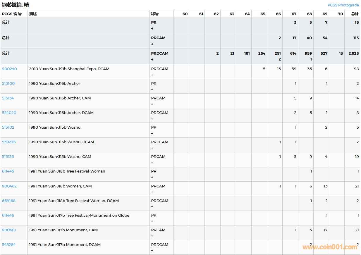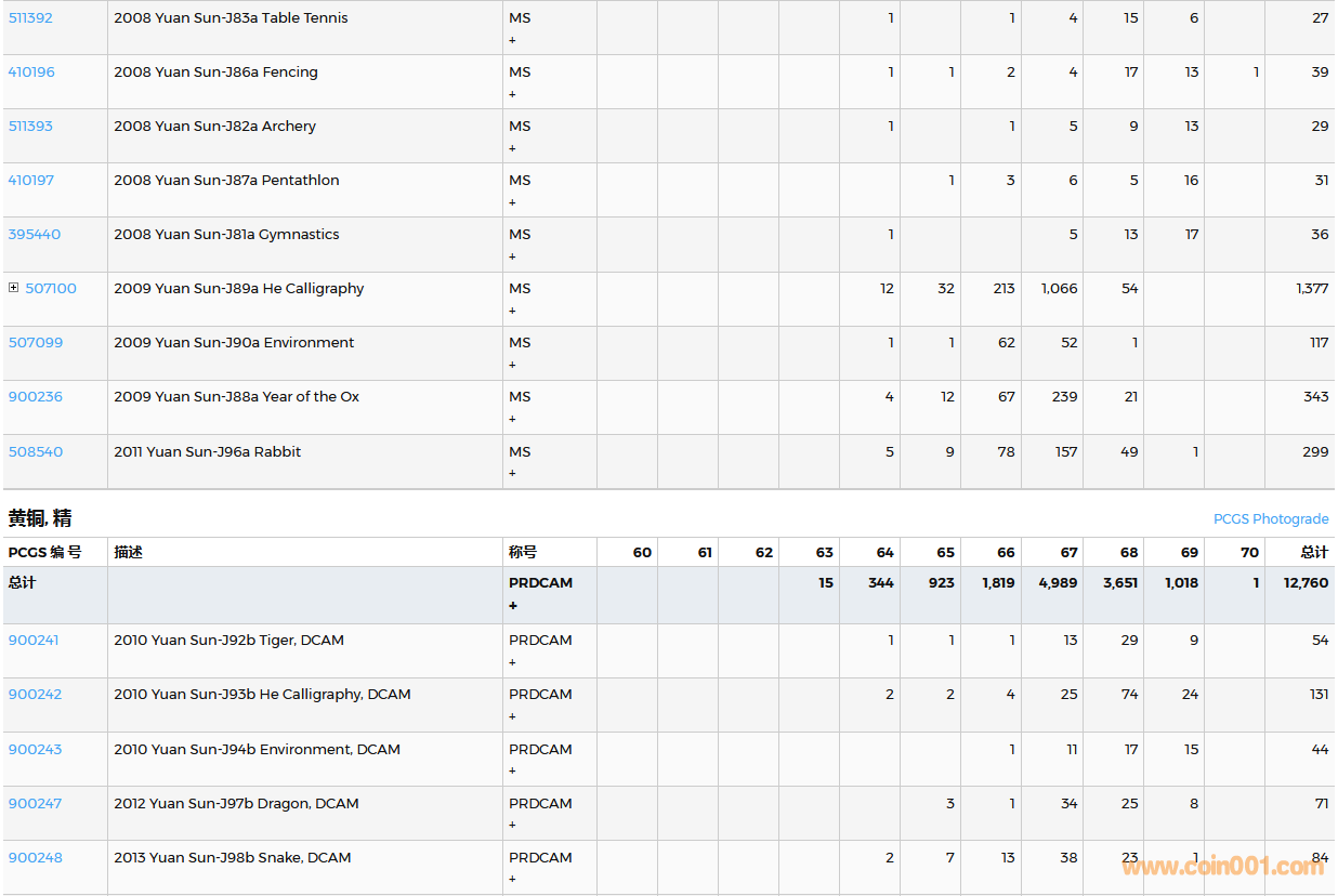 PCGS硬幣評級數(shù)量報告( ..