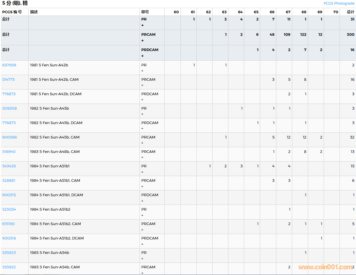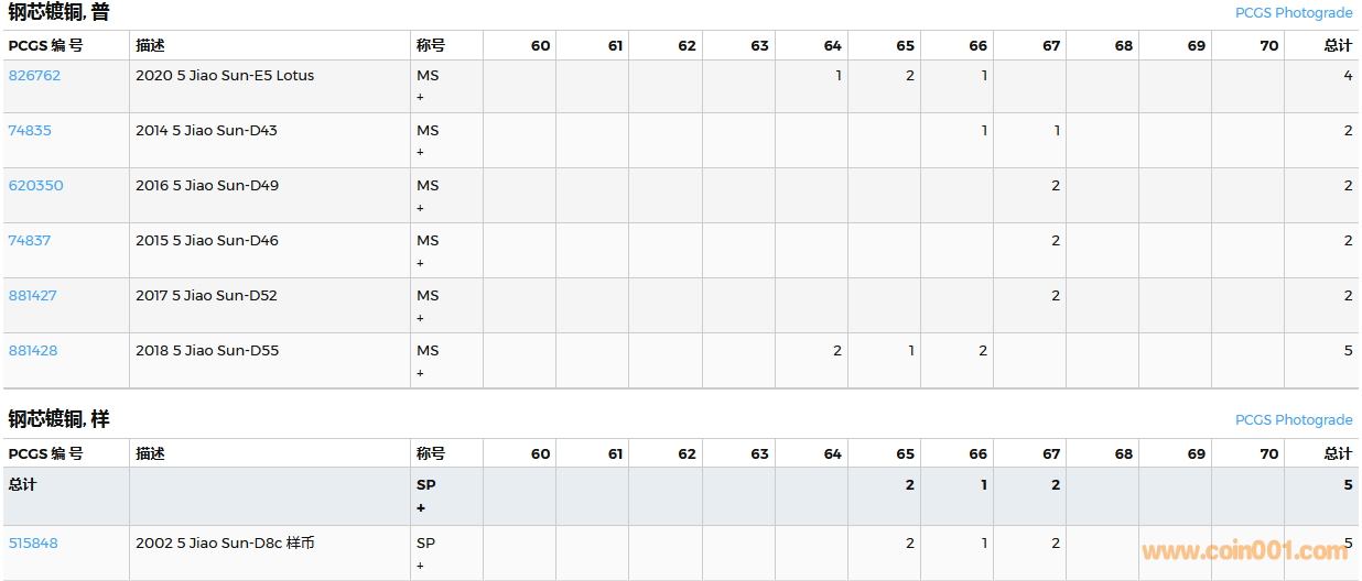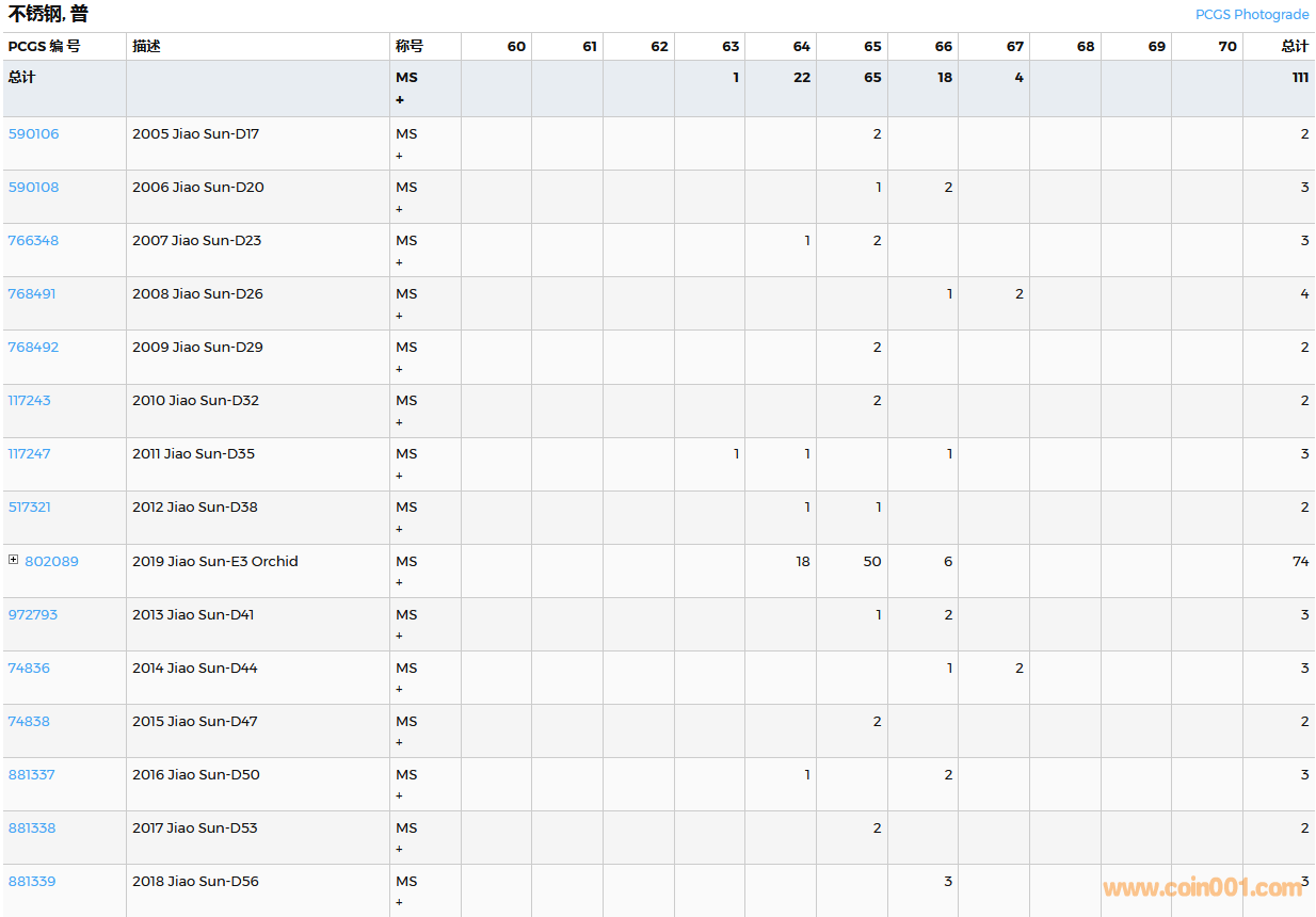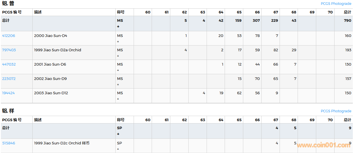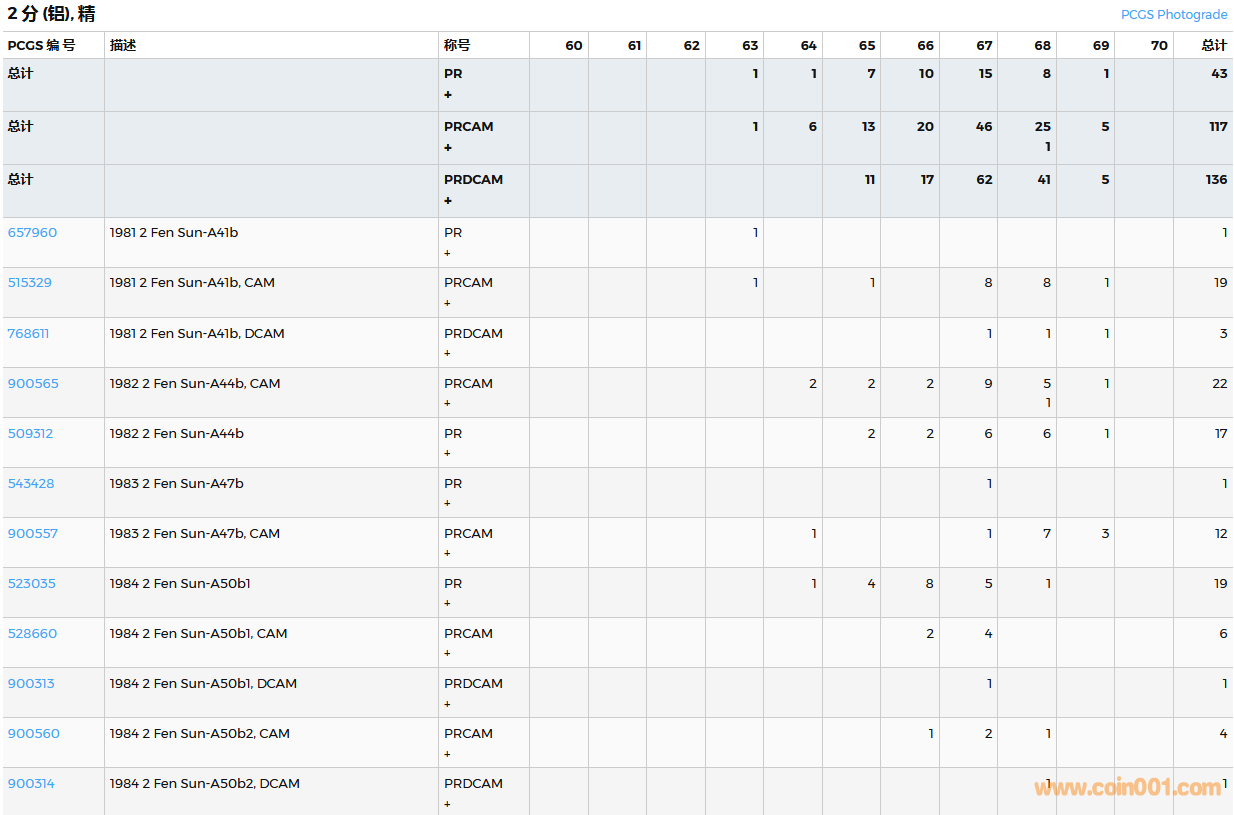 PCGS硬幣評級數(shù)量報告( ..