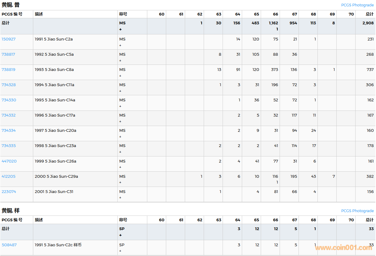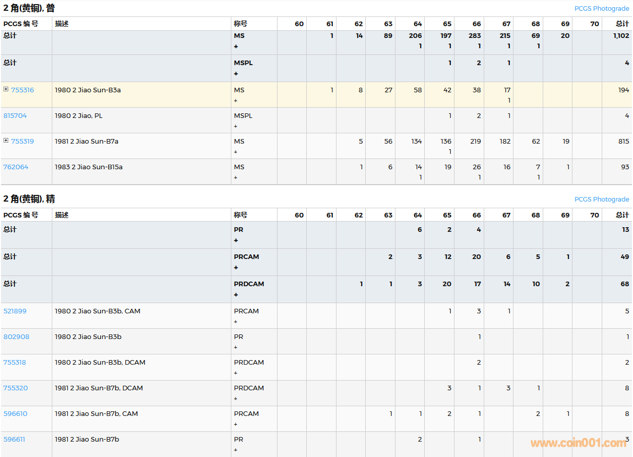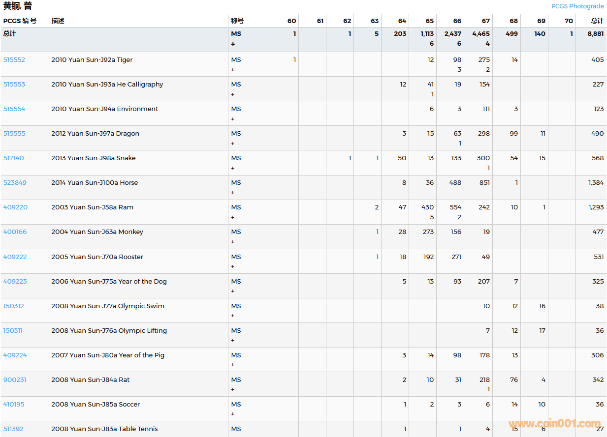 PCGS硬幣評(píng)級(jí)數(shù)量報(bào)告( ..