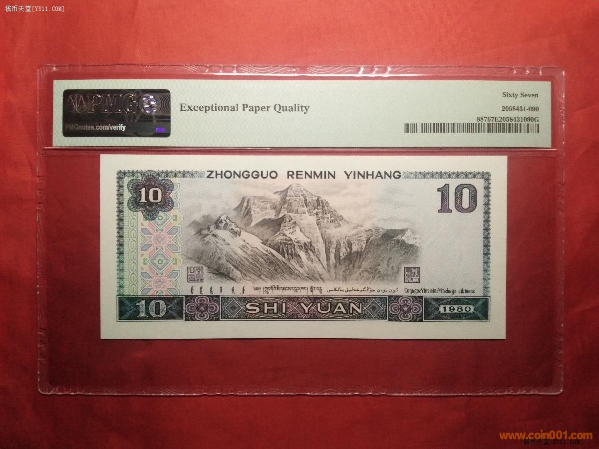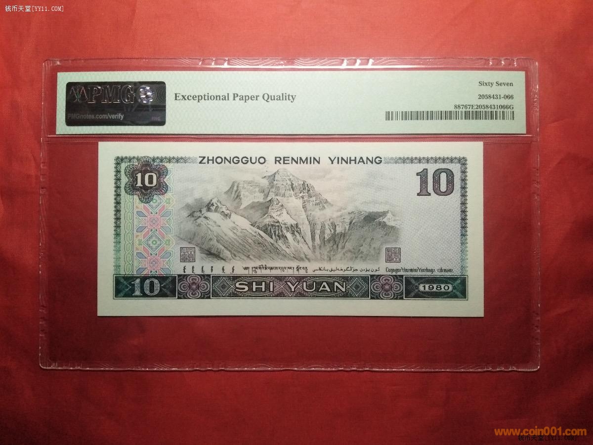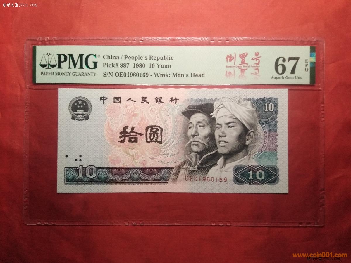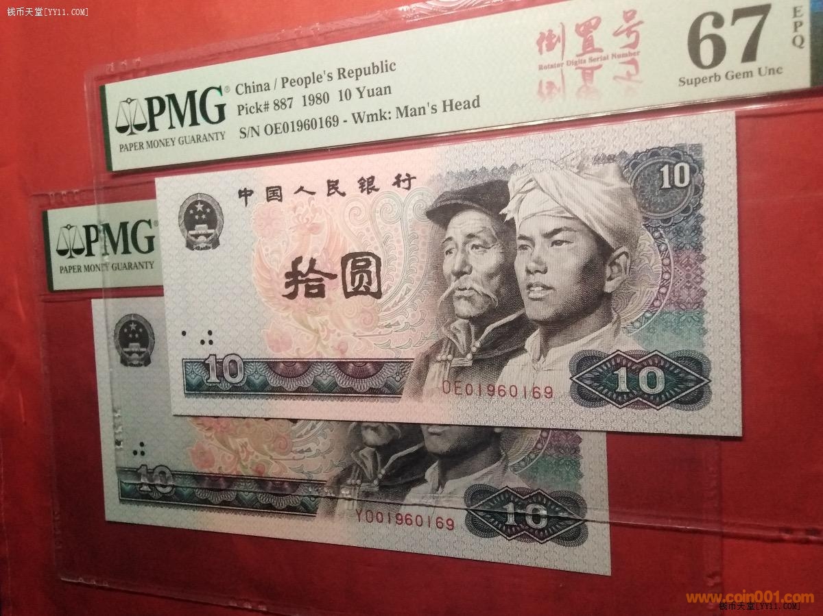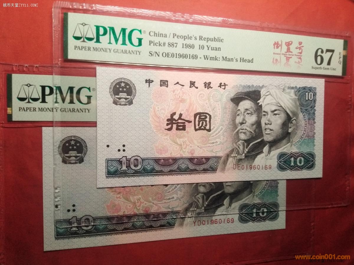 @孿生兄弟PMG67分80年拾元全同倒置號(hào)(中文標(biāo))@