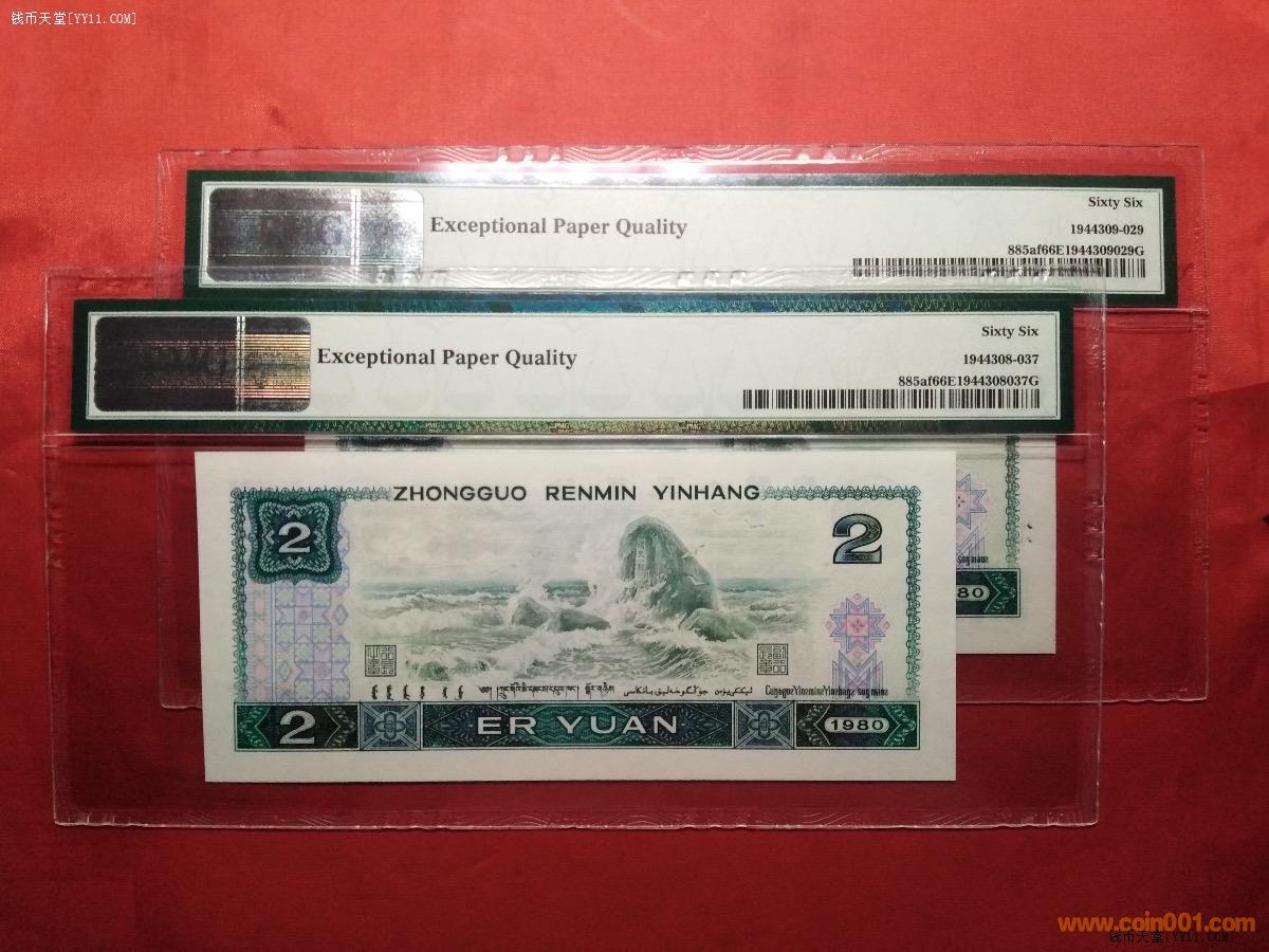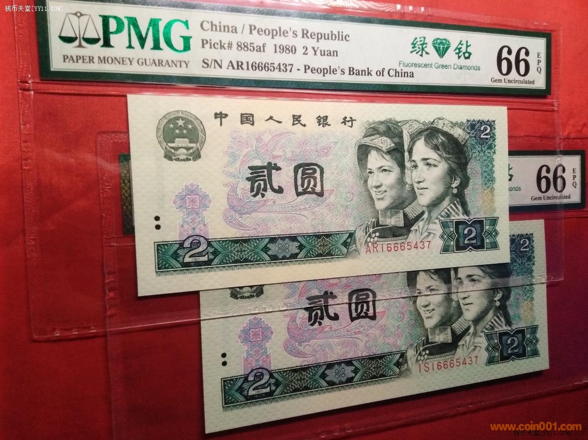 孿生兄弟PMG66分80年貳元全同號(hào)綠鉆(中文標(biāo))
