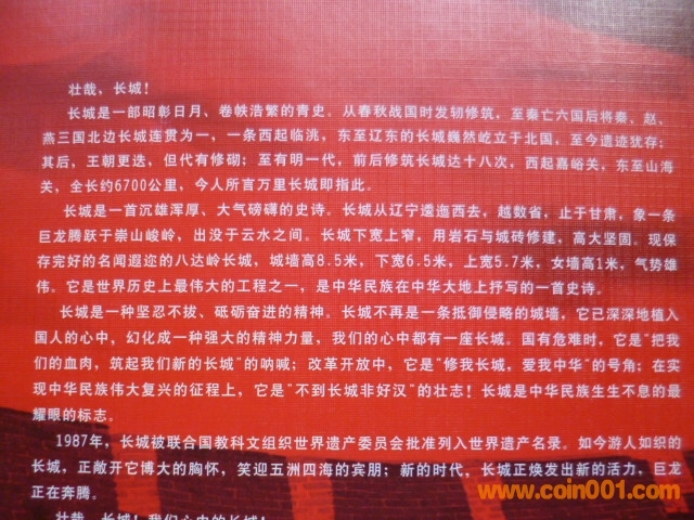 出售康銀閣裝幀<萬里長城特種紀念幣冊>珍藏冊,含,85年長城幣,801紙幣,萬里長城紀念幣,長城金箔,康銀閣證書。(證書號跟801紙幣尾5同號,稀少,多數(shù)為4同或者3同號)裝幀量5萬。品好如圖,有10本,其中5同號9本售250/本,3同號1本售230。2本起售包郵。誠要微信看圖。