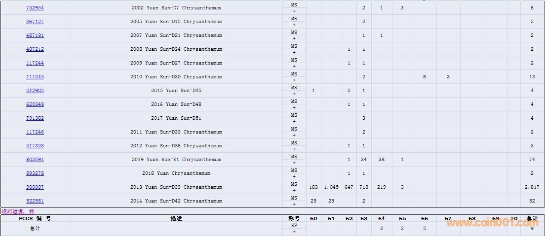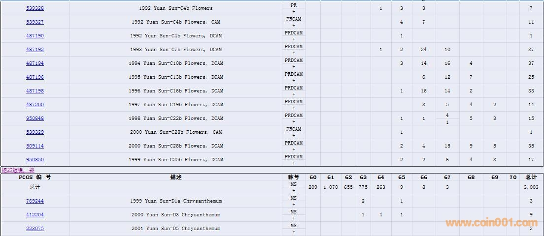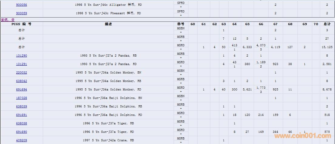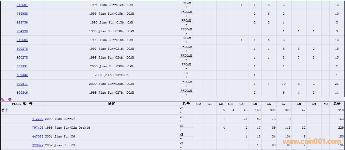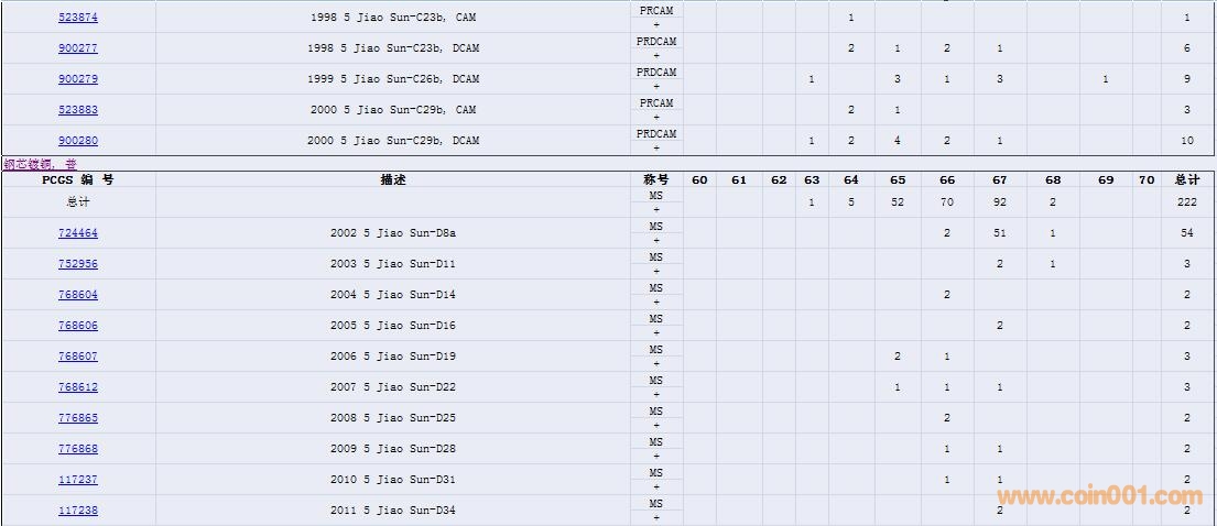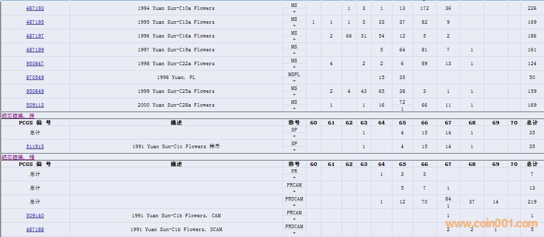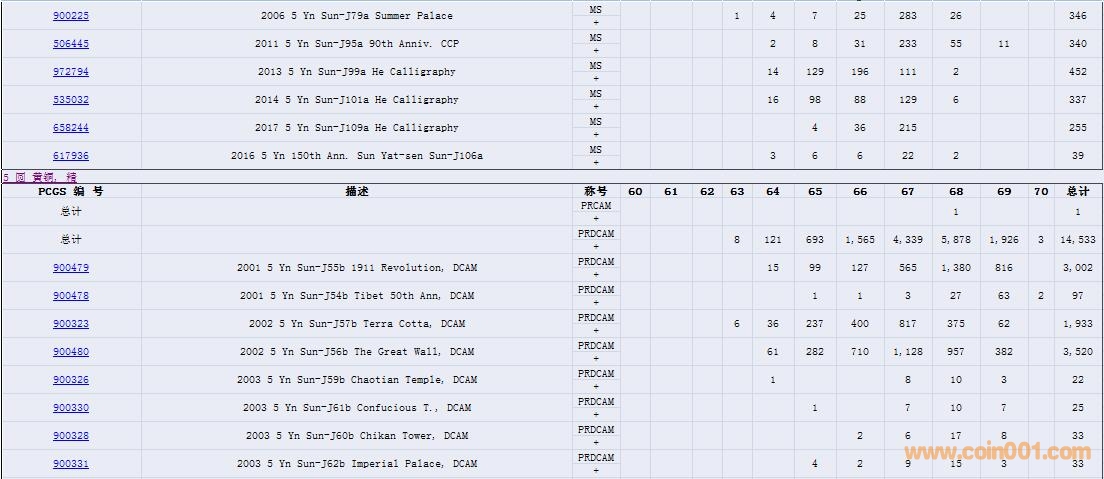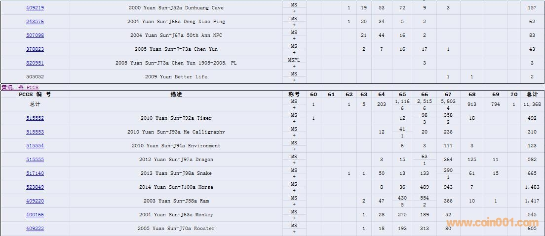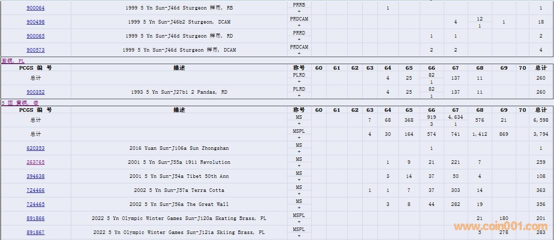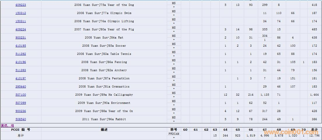 PCGS硬幣評(píng)級(jí)數(shù)量報(bào)告( ..