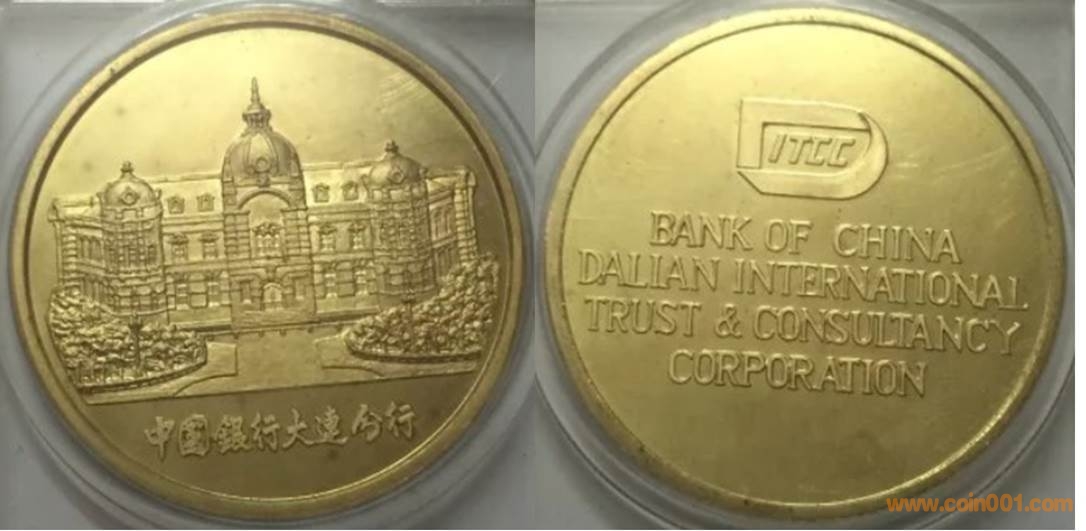 1984年制造,黃銅精制。正面為大樓,反面為英文。