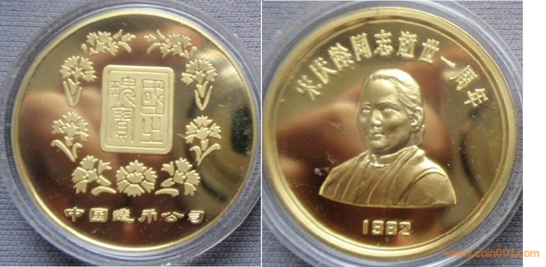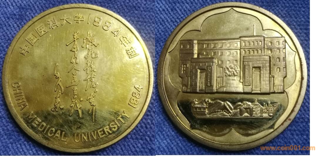 1984年制造,黃銅精制。正面為毛澤東題字,反面為建筑。