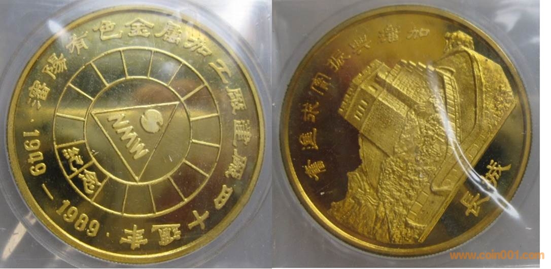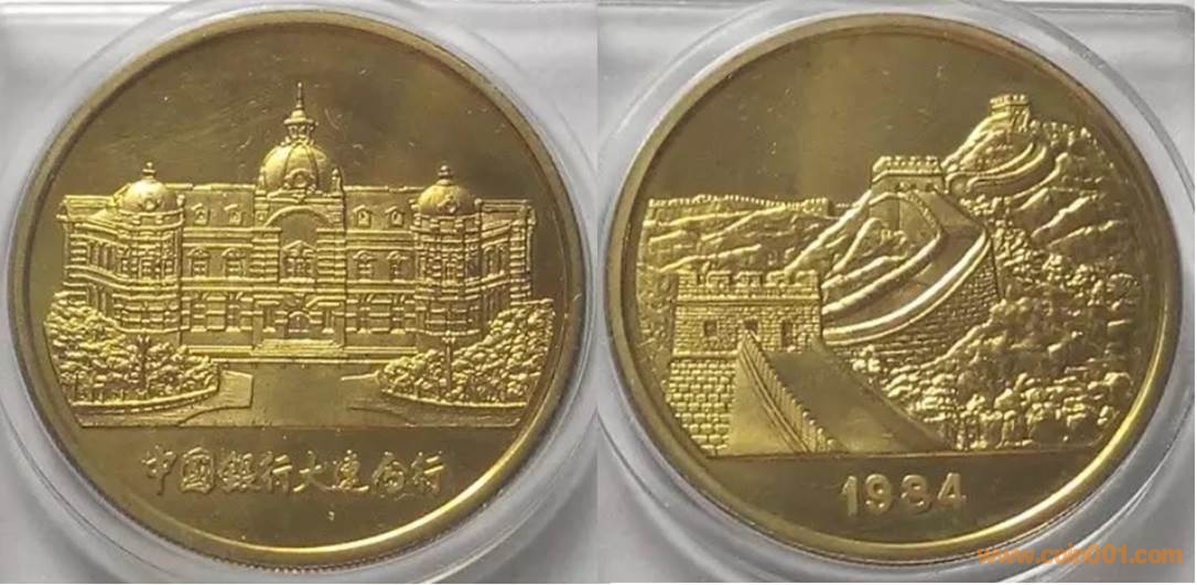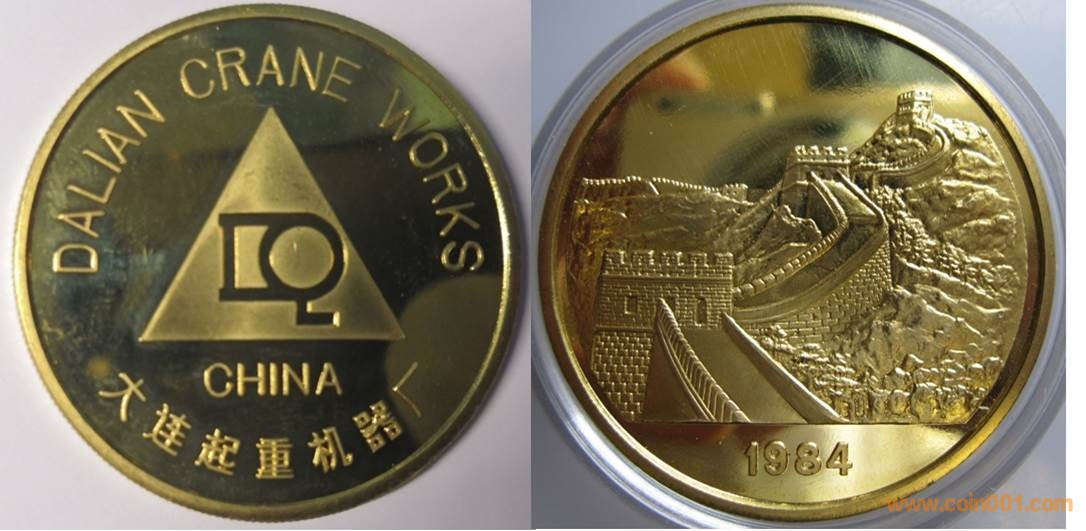 1984年制造,黃銅精制。正面為大樓,反面為長城。