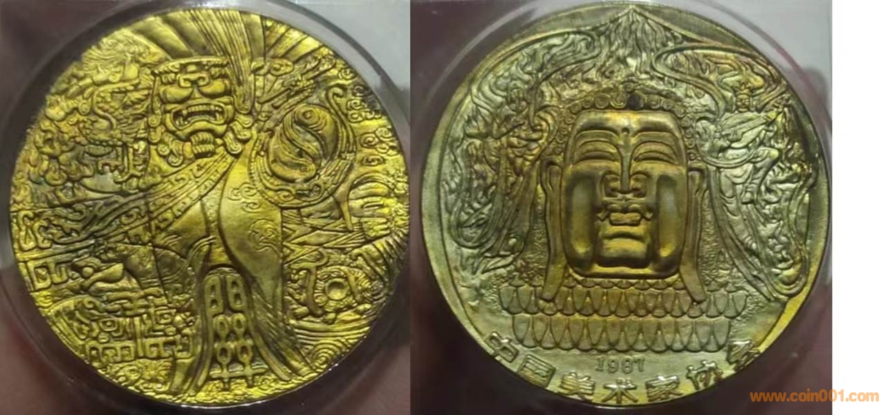 1987年制造,黃銅精制。正面為大佛,反面為四大神獸。