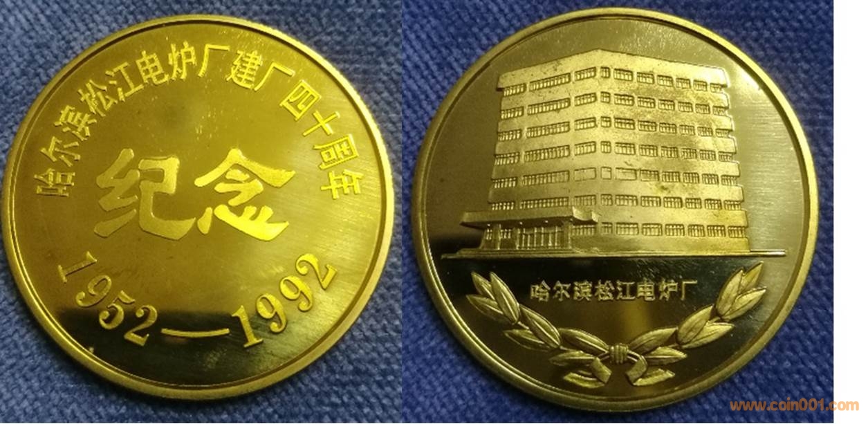 1984年制造,黃銅精制。正面為沈幣廠房,反面為疊幣。