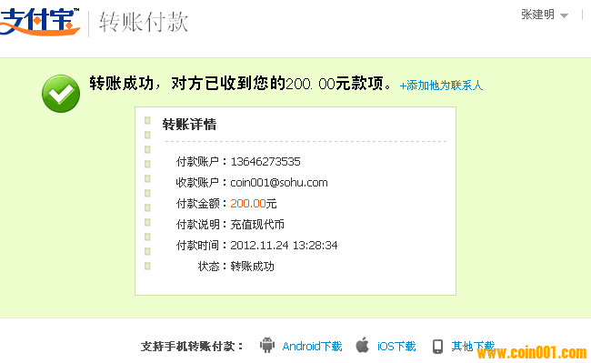 引用 引用第4樓米粒于2012-11-26 17:05發(fā)表的 :您好,由于您的訂單時(shí)間與匯款時(shí)間不是在同一天,我確認(rèn)的時(shí)間延誤了一些,還請(qǐng)您見諒呀! 順便給其他會(huì)員一些建議,希望現(xiàn)代幣充值訂單與匯款時(shí)間最好是在同天,間隔不要很長,這樣我確認(rèn)就更快速更準(zhǔn)確了!多謝大家支持