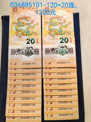 引用 引用樓主tony071166于2024-01-15 12:11發(fā)表的 2024龍鈔20連 :2024龍鈔20連J036885101-1201200元