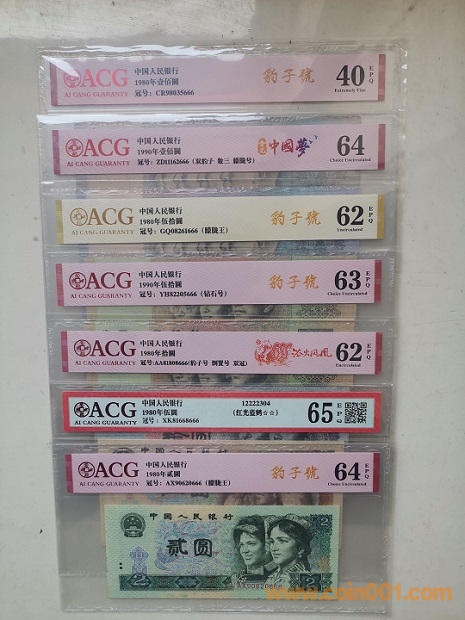 本套幣除了無4、7尾號為吉祥號666這一特征外,還有多張具有好號碼的其他特征。其中,倒置號3張(8010,805,902),朦朧王2張(8050,802),朦朧號2張(90100,961),鉆石號1張(9050)。由于80100和8050的稀缺性,尋找這二張尾號666品相稍微好一點(diǎn)的豹子號實(shí)在是太難了。現(xiàn)在尚且如此,相信將來更不好找。在改*號幣層出不窮的今天,真品難得啊。另附皮質(zhì)精美珍藏冊和手提袋,無論是個(gè)人收藏還是饋贈親友,都是一件珍貴、完整、成熟的收藏品。15000元包順豐。