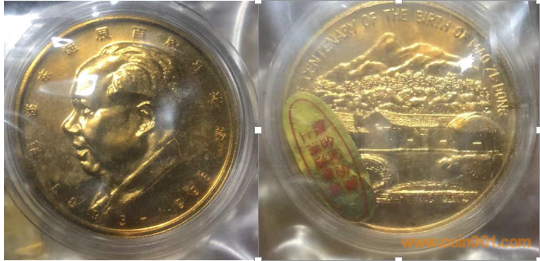90年代制造,黃銅普制鍍金36mm上幣發(fā)行。正面為孫中山,反面為孫中山故居。
