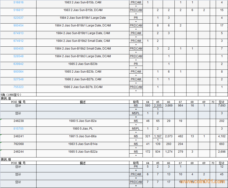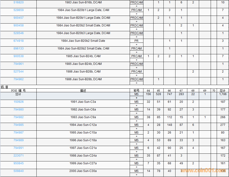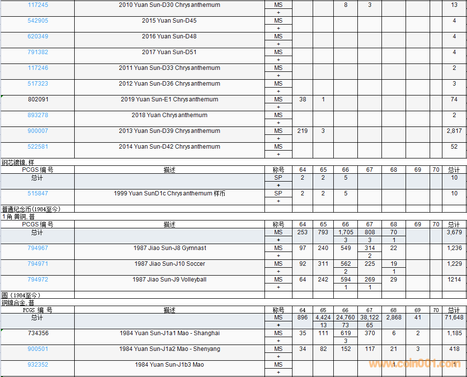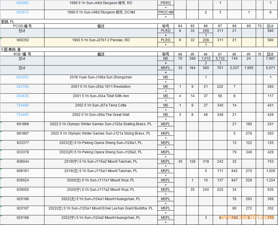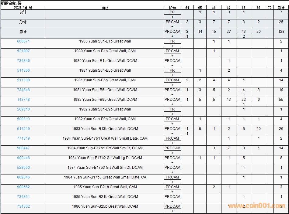 PCGS硬幣評(píng)級(jí)數(shù)量報(bào)告( ..
