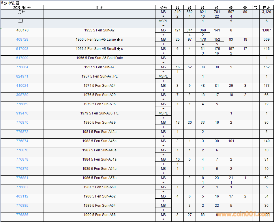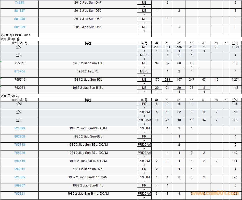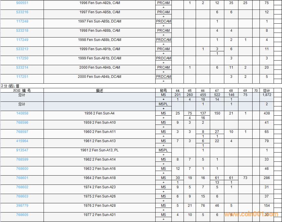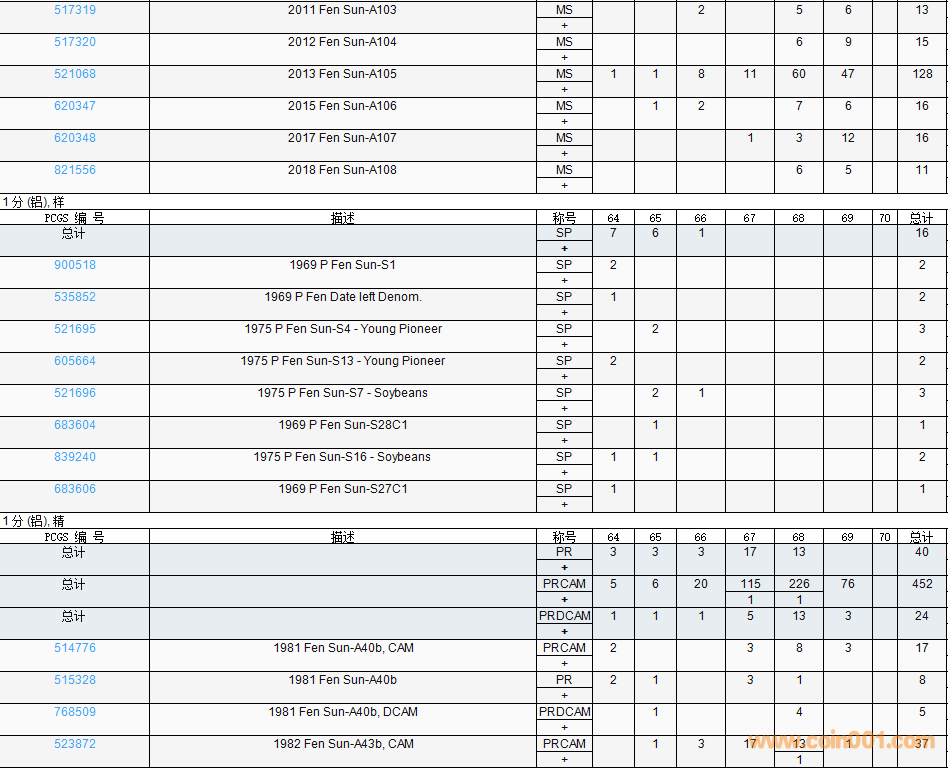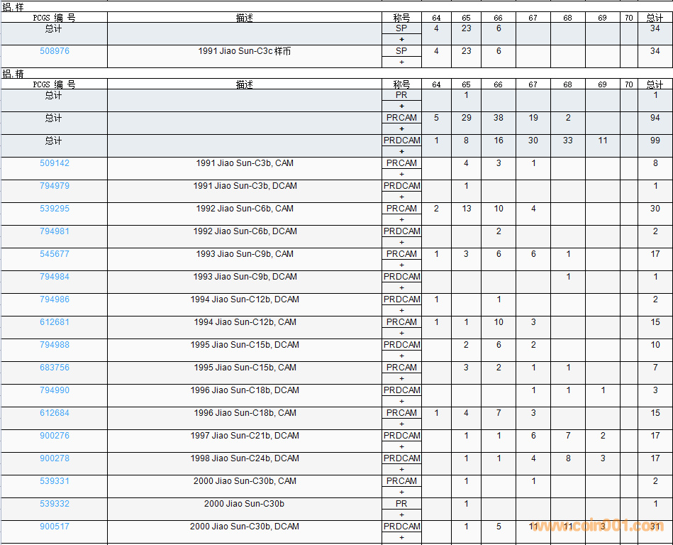 PCGS硬幣評(píng)級(jí)數(shù)量報(bào)告( ..