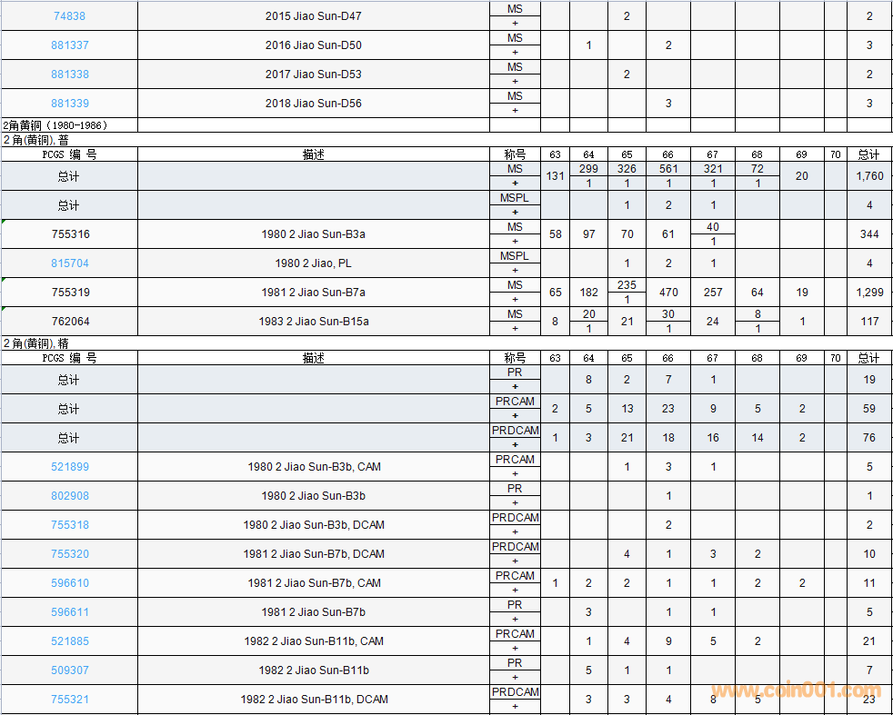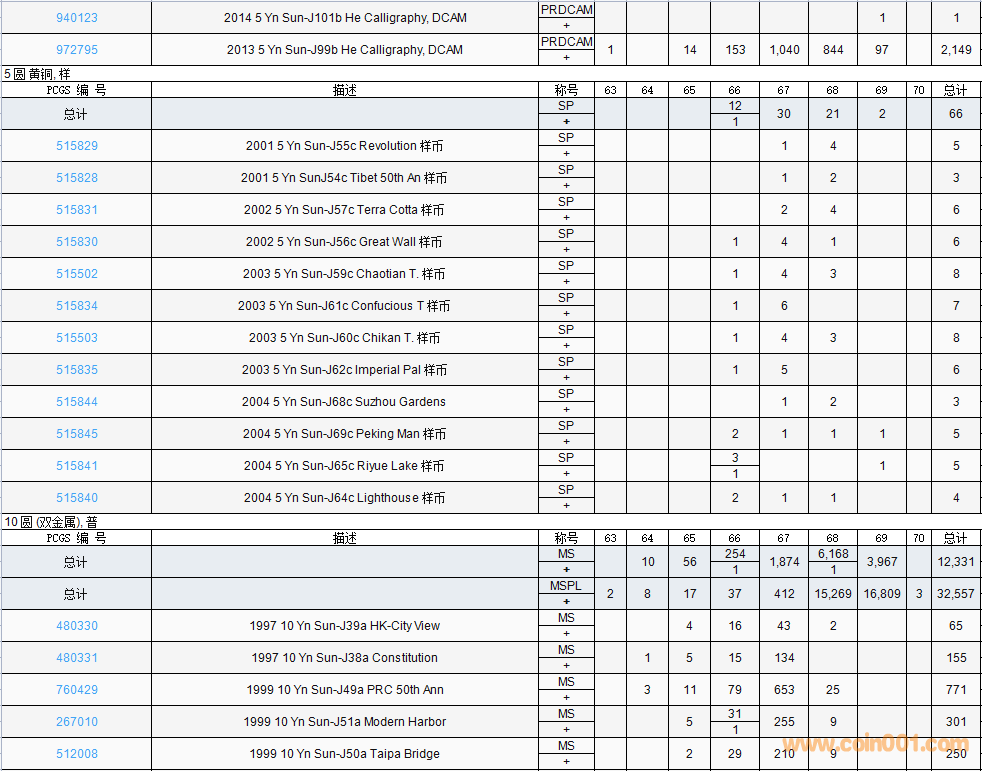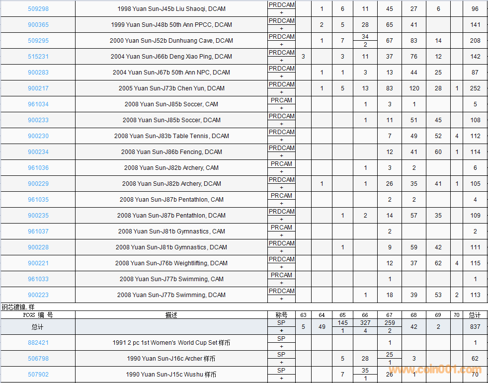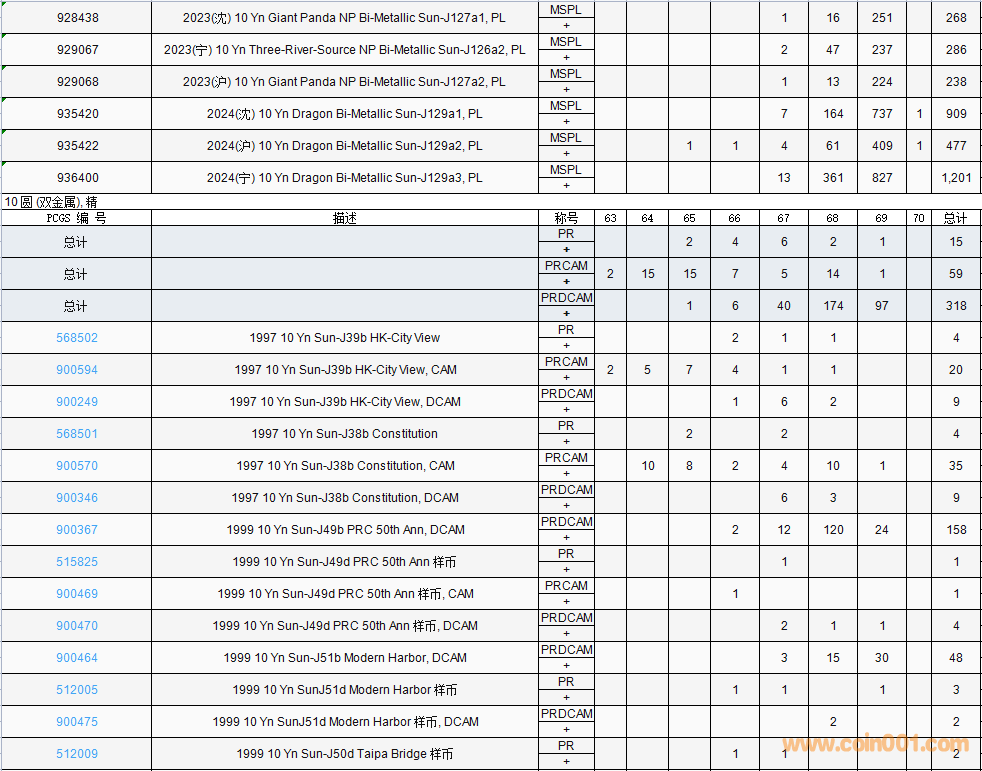 PCGS硬幣評(píng)級(jí)數(shù)量報(bào)告( ..