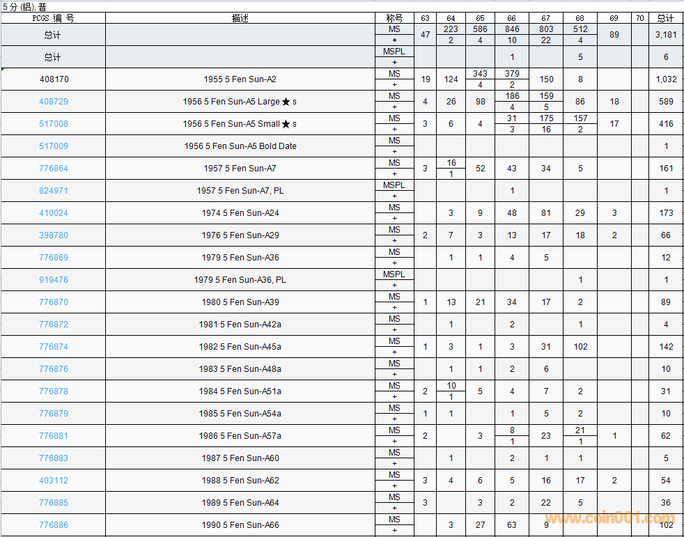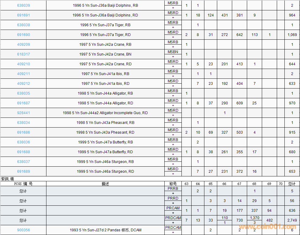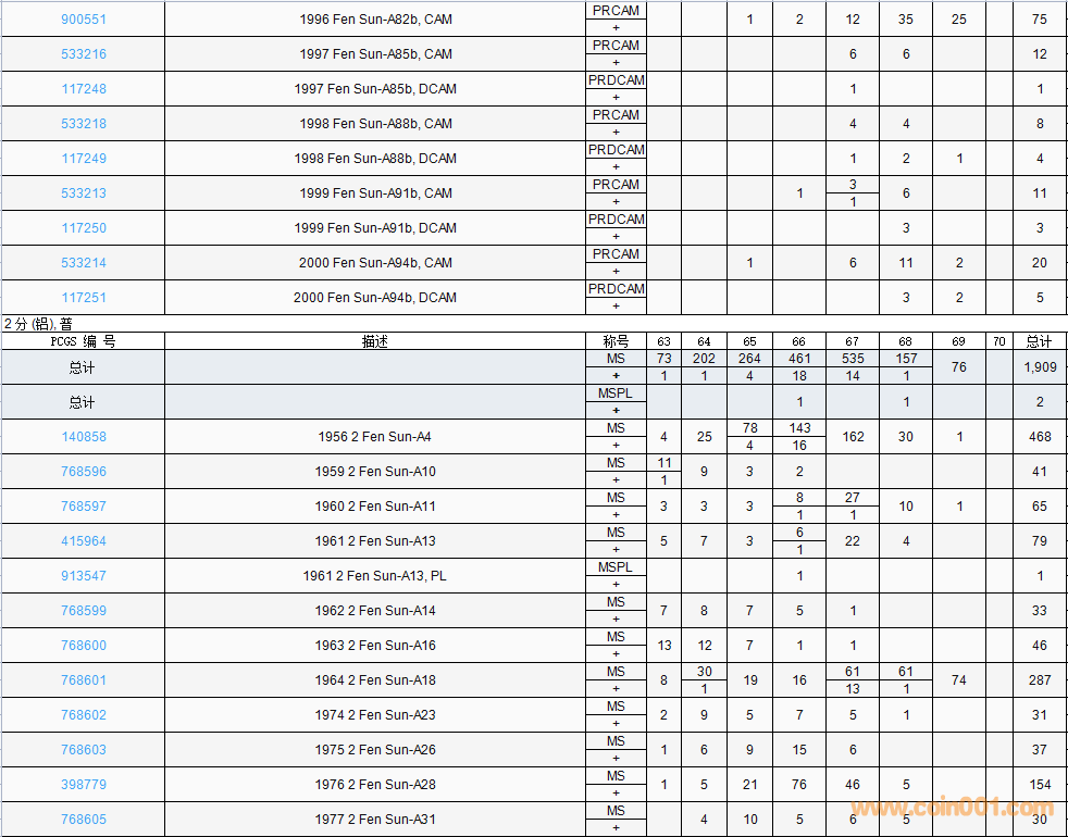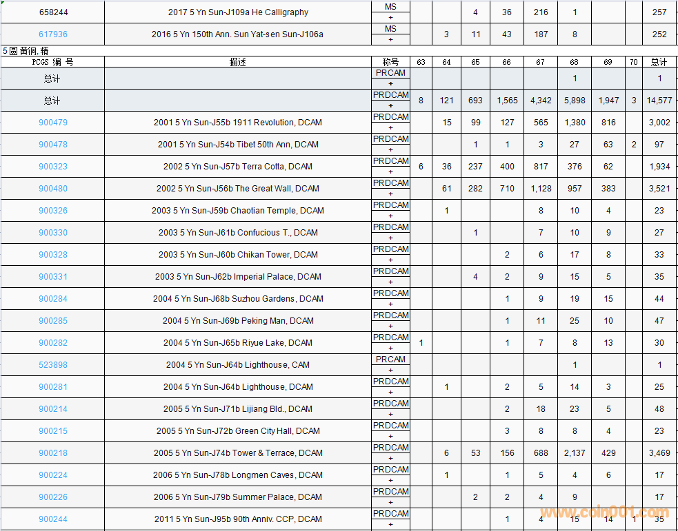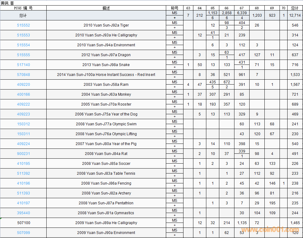 PCGS硬幣評(píng)級(jí)數(shù)量報(bào)告( ..
