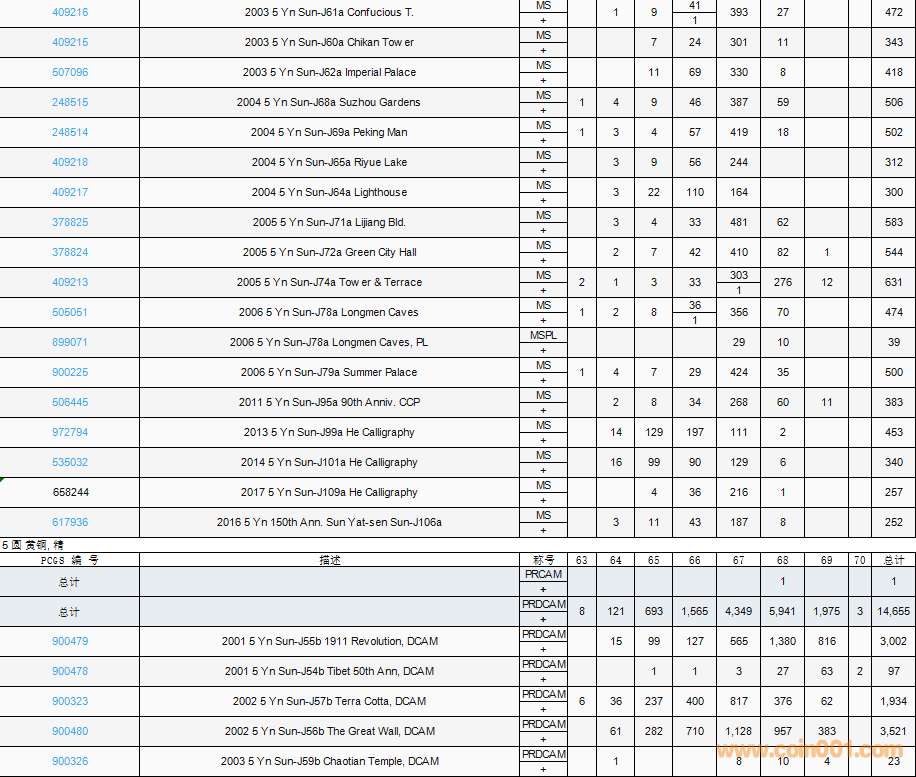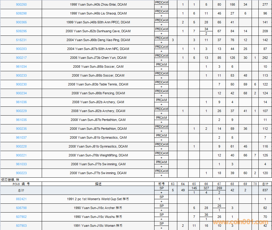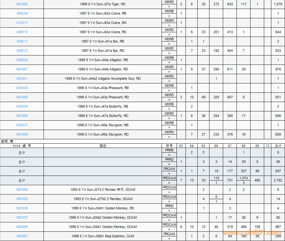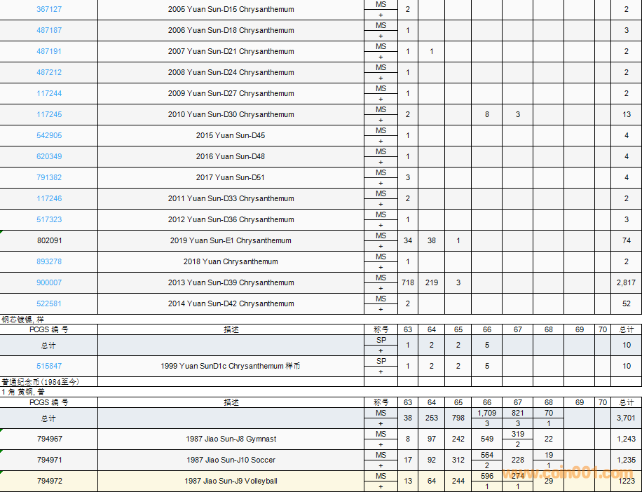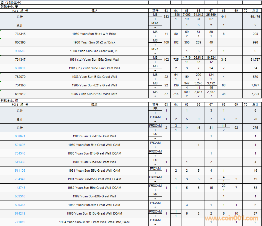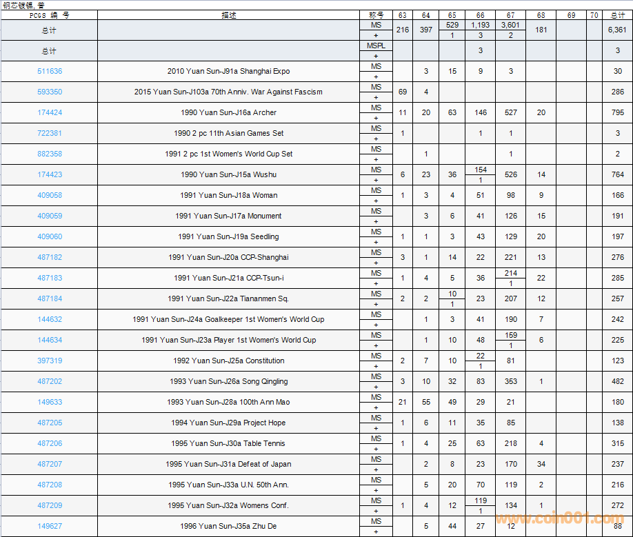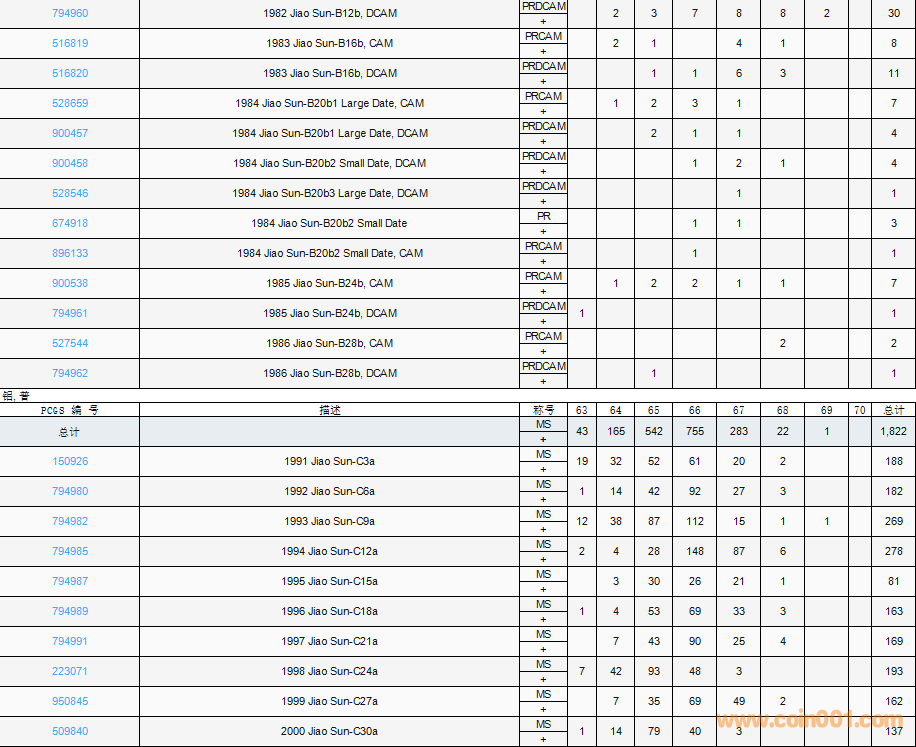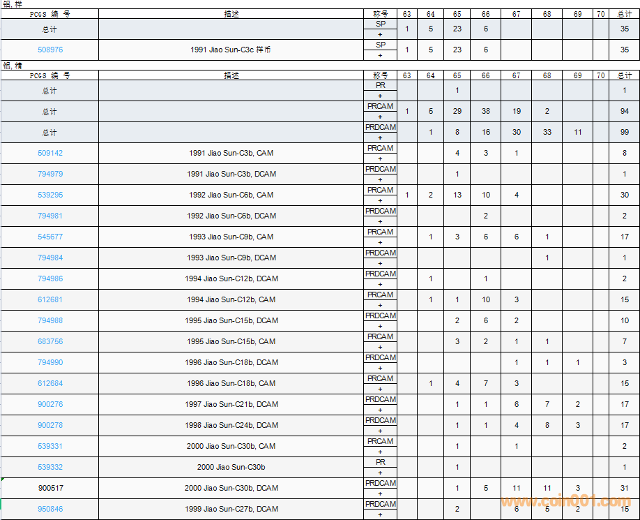 PCGS硬幣評(píng)級(jí)數(shù)量報(bào)告( ..