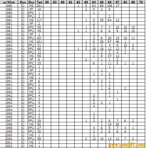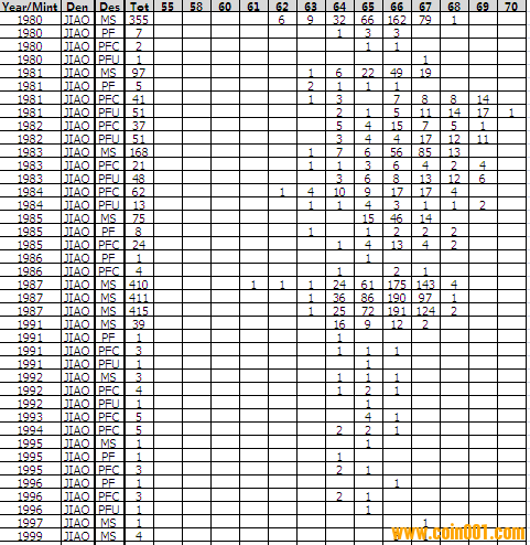 NGC硬幣評級分?jǐn)?shù)分布 ..