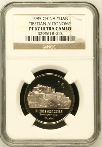 For proof coin, we found the results are about right, as long as the coin is made by either copper-nickel alloy or nickel coated steel. Such as the 35 Anniversary, Tibet(1985), Xinjiang, Year of Peace, Centre Bank 40 Anniversary, Asian Game, Anti Japanese War, World Women Conference, and the Project Hope, issued in early stage (1984 ~ 1995), and Zhude, Deng Xiaoping, Chenyun, CNPC, issued in later stage (after 1996), all graded as PF, except PL for Asian Game. The grades of red copper animal proof coins are all rated MS, none was PF. We found only 2 brass alloy coins were graded as PF, the rest were all MS, such as new Tibet (2001), the Revolution of 1911, the World Culture Treasure, Taiwan series, Chinese New Year series. For the dual-metal coins, the New Century was PF, but National 50 anniversary was MS.