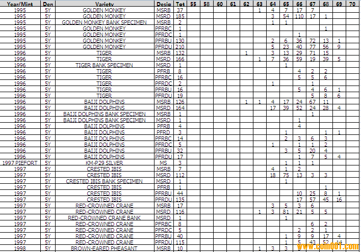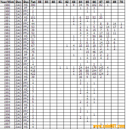 NGC硬幣評級分數分布 ..
