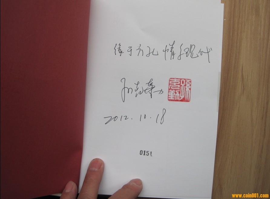 售《中國現(xiàn)代流通硬幣標(biāo)準(zhǔn)目錄》簽名本(編號(hào)151號(hào)加蓋孫老師的壽山石印)