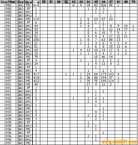 NGC硬幣評級分?jǐn)?shù)分布 ..