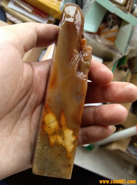 (3)壽山石印章之馬背山水人物薄意章,沒(méi)有缺陷,章高:9.3公分,章面:2.5公分*2.5公分,壽山石品種之一都成坑馬背石,質(zhì)地很好,色澤漂亮,石性穩(wěn)定,手工雕刻,三包天然壽山石,包石頭天然原色;刻劃人物傳神,石質(zhì)溫潤(rùn)熟美,章料彰顯大氣,文雅之士必備用品,價(jià)格:800元,具體圖片請(qǐng)看三樓的圖片。