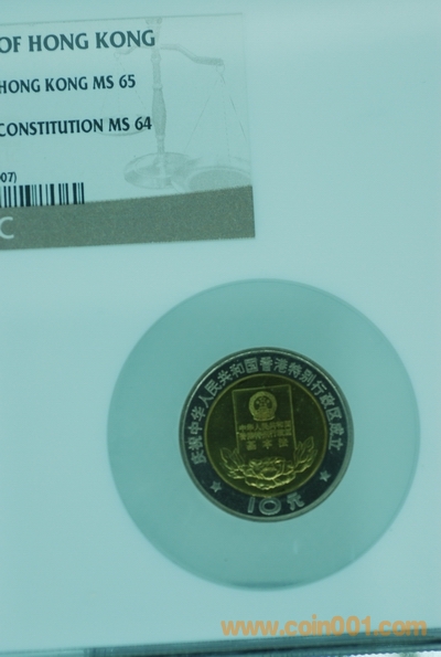7.精制香港回歸,多幣封裝,MS65,MS64,420元/套,只一套,本無(wú)證,有冊(cè)。