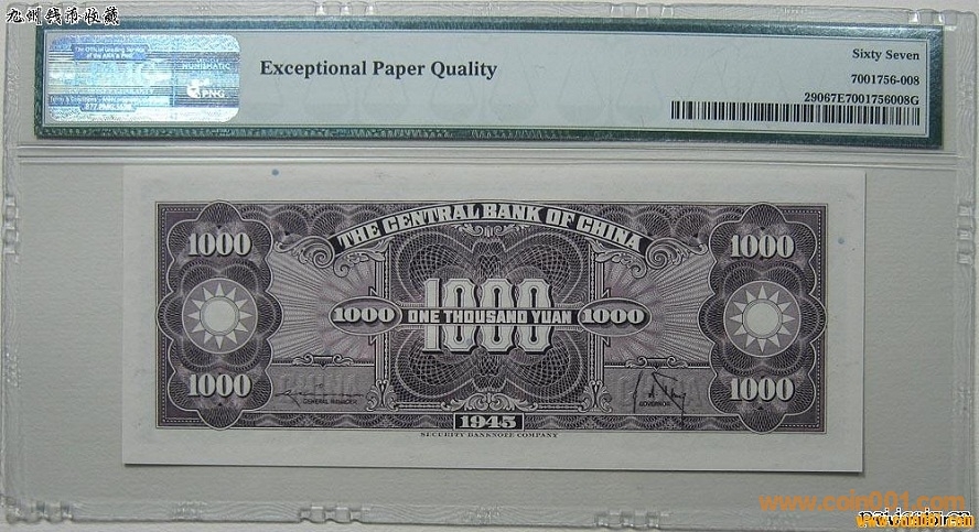 PMG 67EPQ中央銀行壹千元