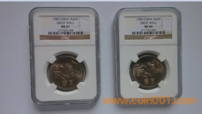 引用 引用樓主王克迪于2013-08-07 12:57發(fā)表的 85長城評級幣 :?? ????85長城評級幣3枚,66分和67分連號一對,外加66分一枚2775773-005,3枚一起走600元,不玩長城幣了所以低價出手。