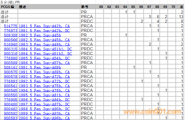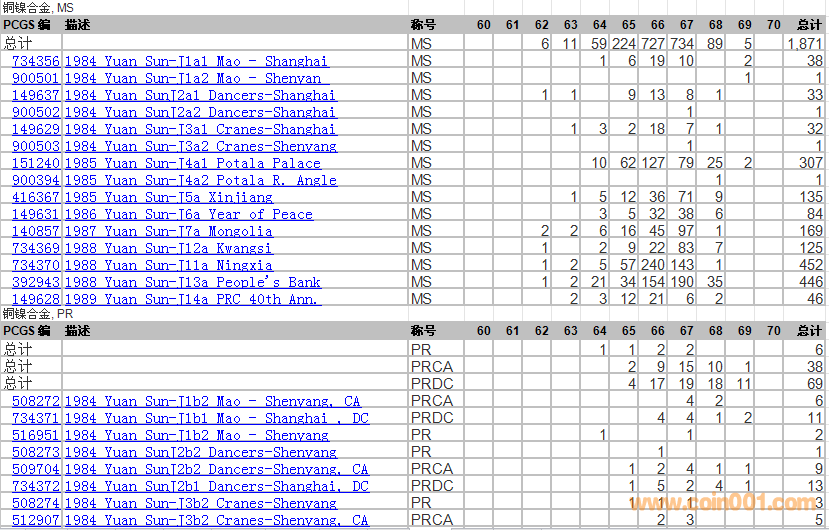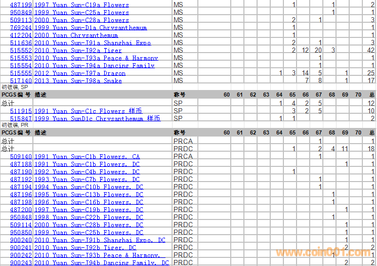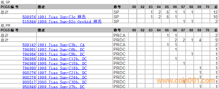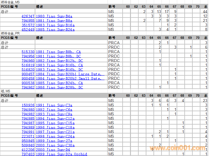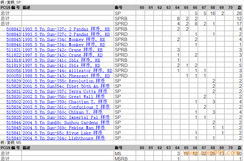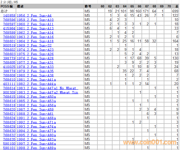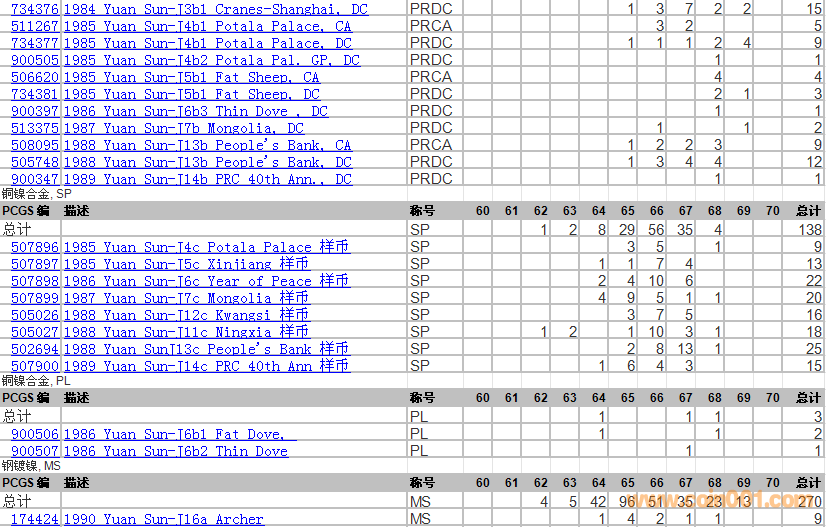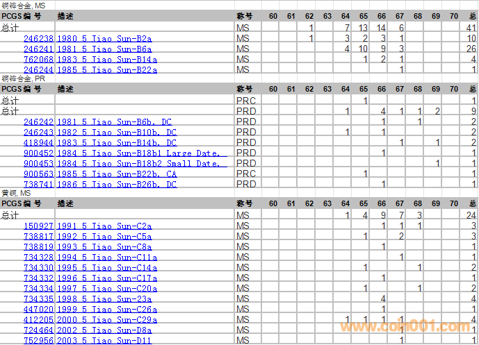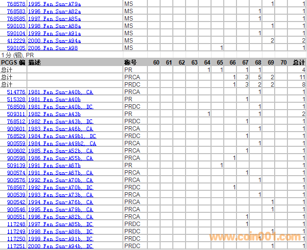 PCGS硬幣評(píng)級(jí)分?jǐn)?shù)分布 ..