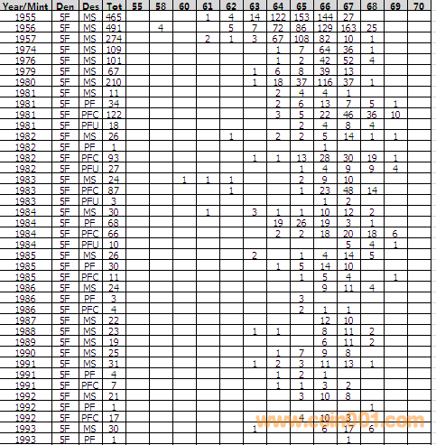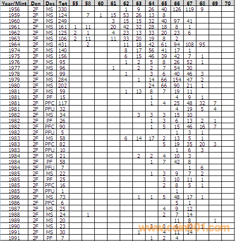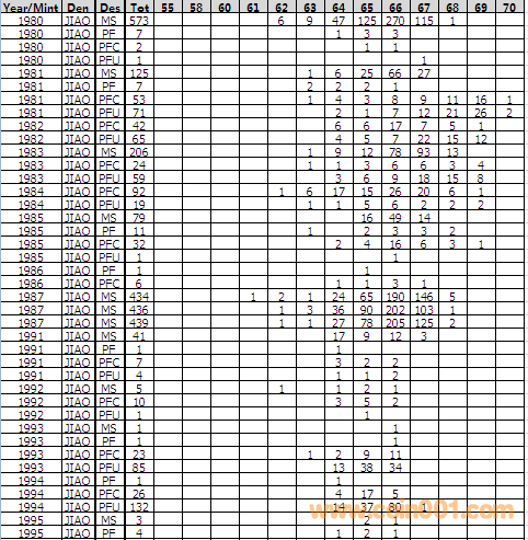 NGC硬幣評級分?jǐn)?shù)分布 ..
