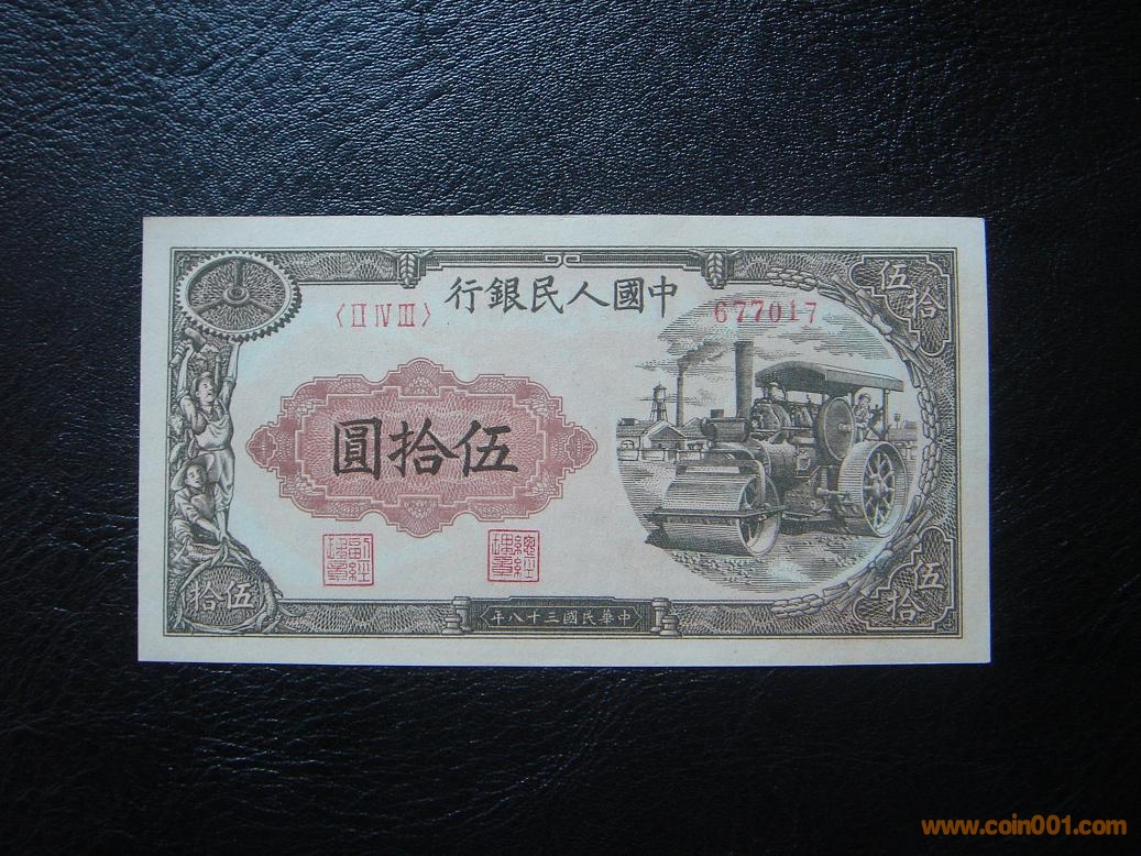 全新原票一版50元壓路 ..