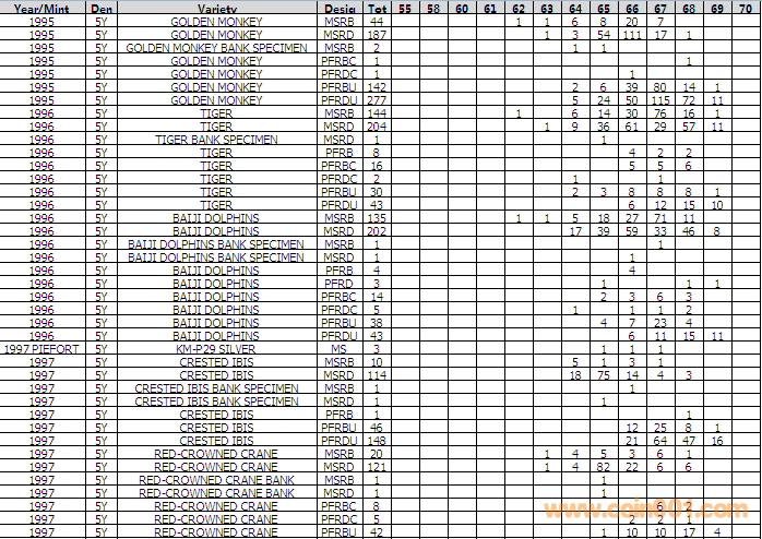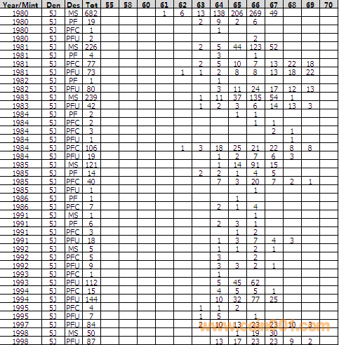 NGC硬幣評(píng)級(jí)分?jǐn)?shù)分布 ..