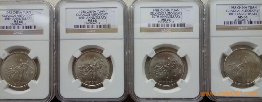出幾枚評(píng)級(jí)普通紀(jì)念幣(和平廣西新疆)