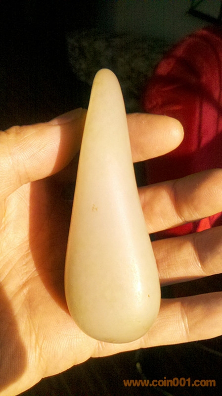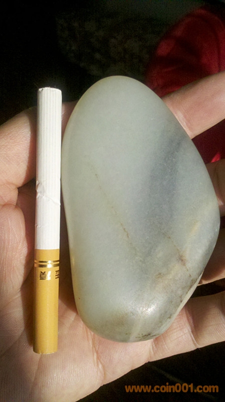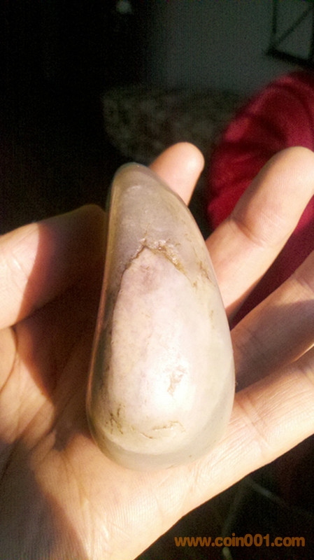 新疆和田玉原籽重180克 85X50X30MM 此籽毛孔清晰玉質油潤,打燈見結構,在側面有僵,入肉不深,形好,大小一把抓,可雕可直接把玩。實價2800元