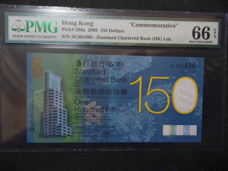 香港渣打150周年紀(jì)念鈔150元PMG評級幣、150元這個面值再全球都少見,發(fā)行量本來預(yù)計(jì)是75萬張的,結(jié)果設(shè)計(jì)印刷出來,票的背面打電話的男人是一個手6個手指的,所謂錯版鈔,只發(fā)行了10萬張就全部停止發(fā)行了,和雙龍鈔一樣的發(fā)行量。