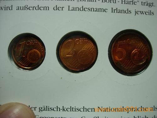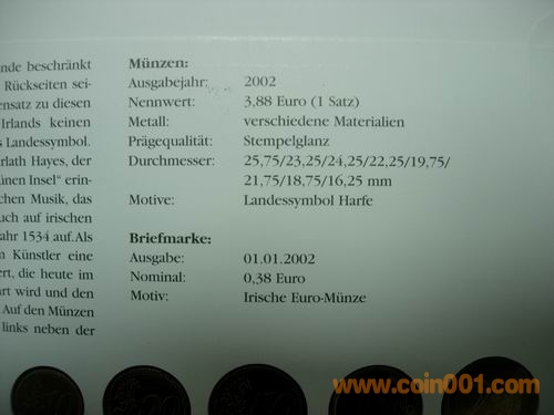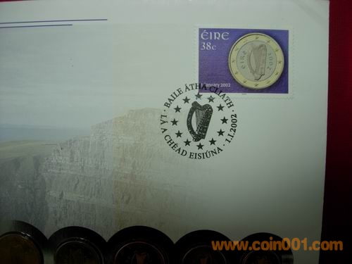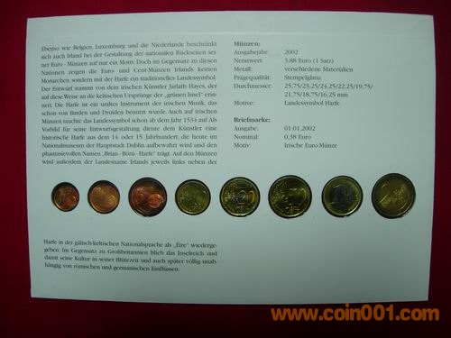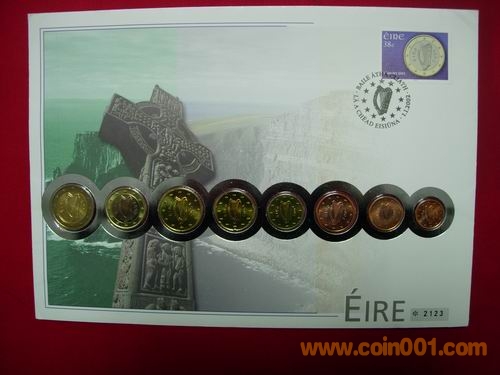 1、2、5分 10分 50分 1、2元 2002版愛爾蘭歐元幣封,幣有自然氧化。158元出售。