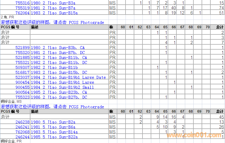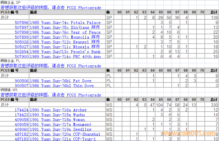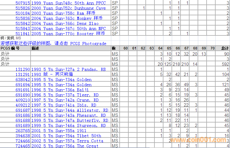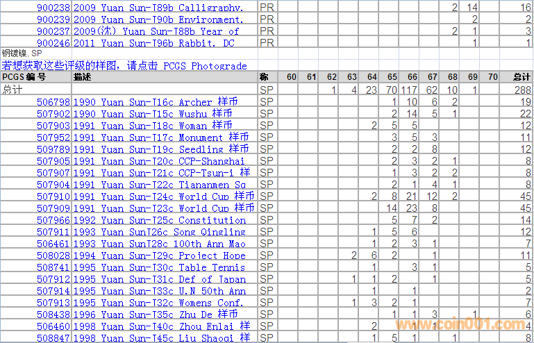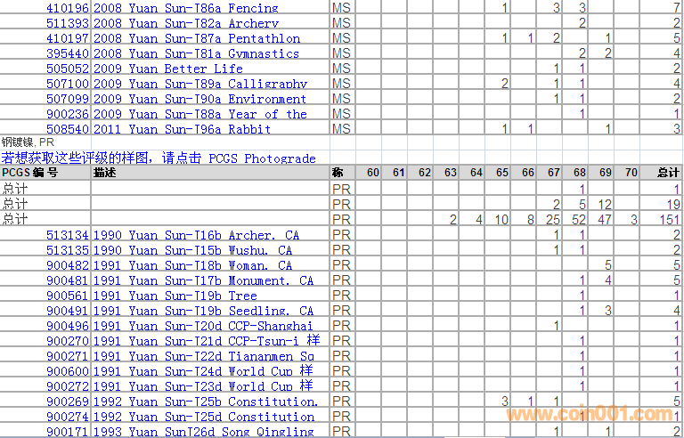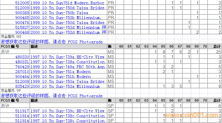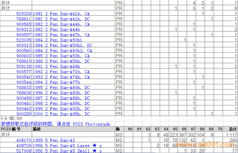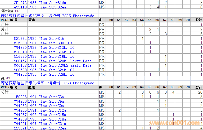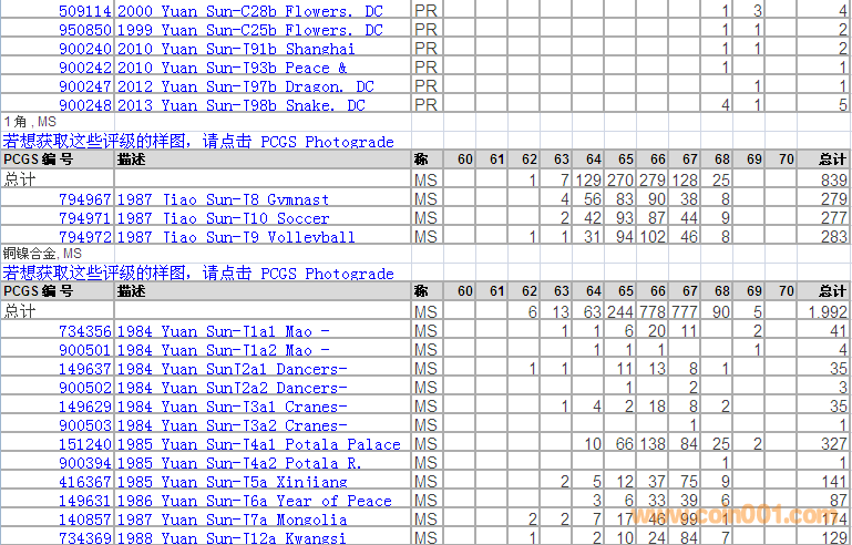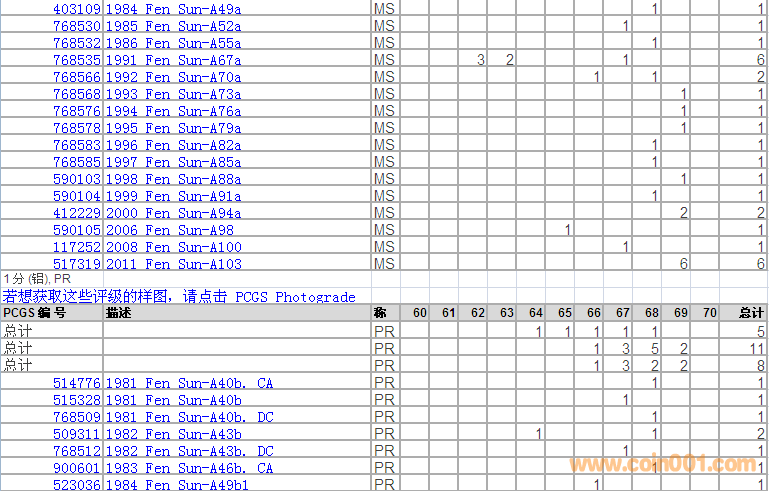 PCGS硬幣評級分?jǐn)?shù)分布 ..