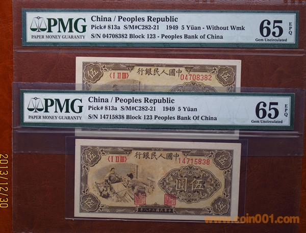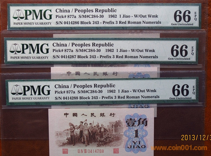 引用 引用第8樓prometheus于2013-12-31 09:20發(fā)表的 : 壹圓五星水印一枚 豹子號(hào) 71413555、PMG 67EPQ 320元 伍角凸版水印一枚(豹子號(hào)、ⅧⅩⅡ0693111、PMG 67EPQ) 380元 確認(rèn),包外殼無(wú)嚴(yán)重破損