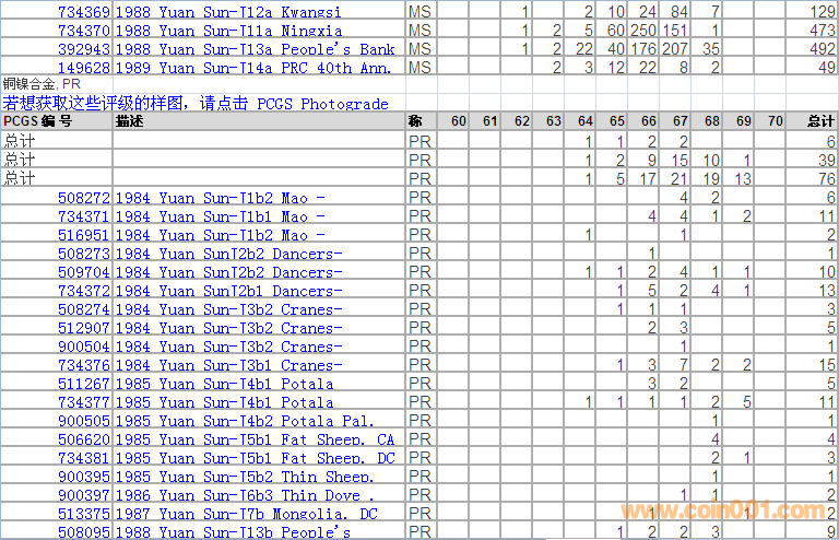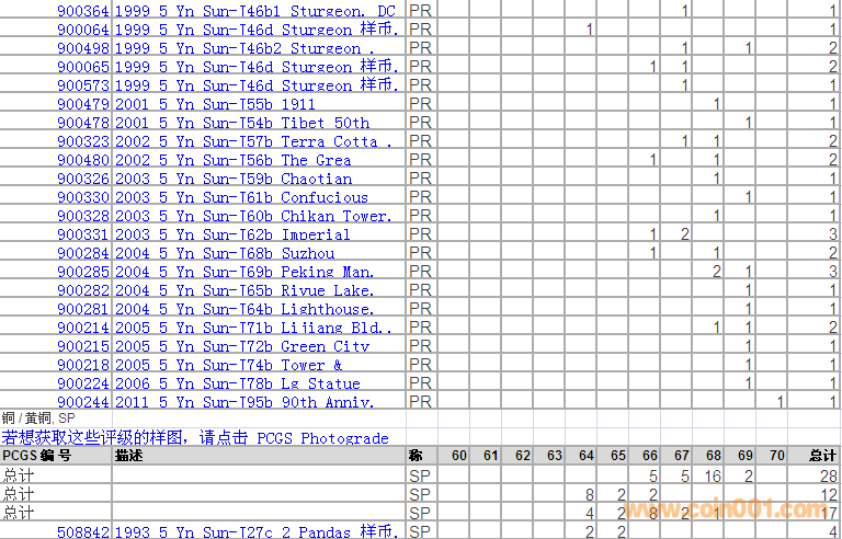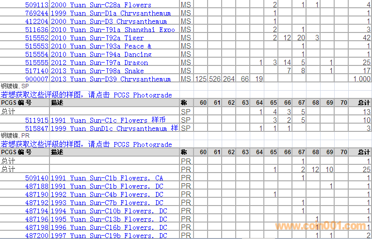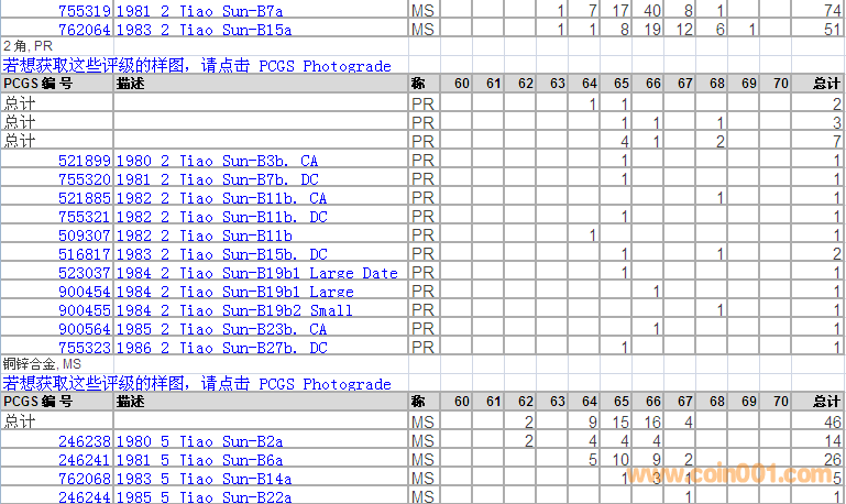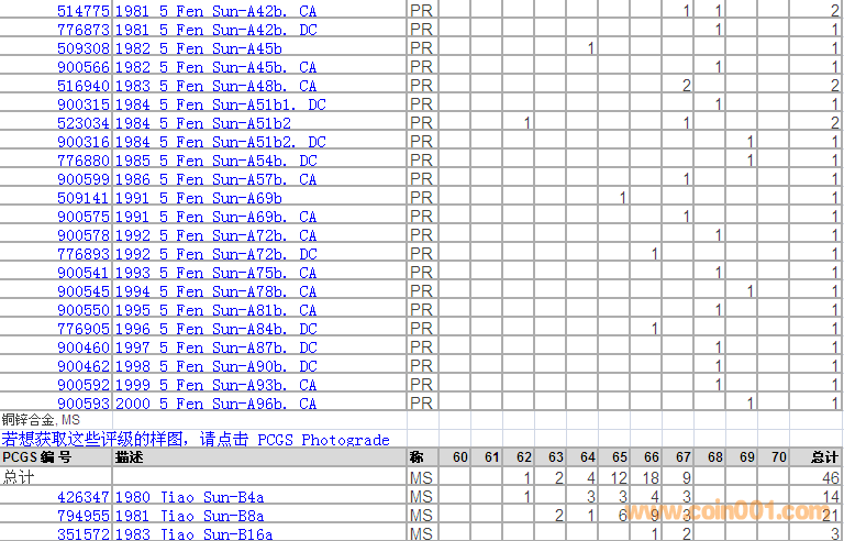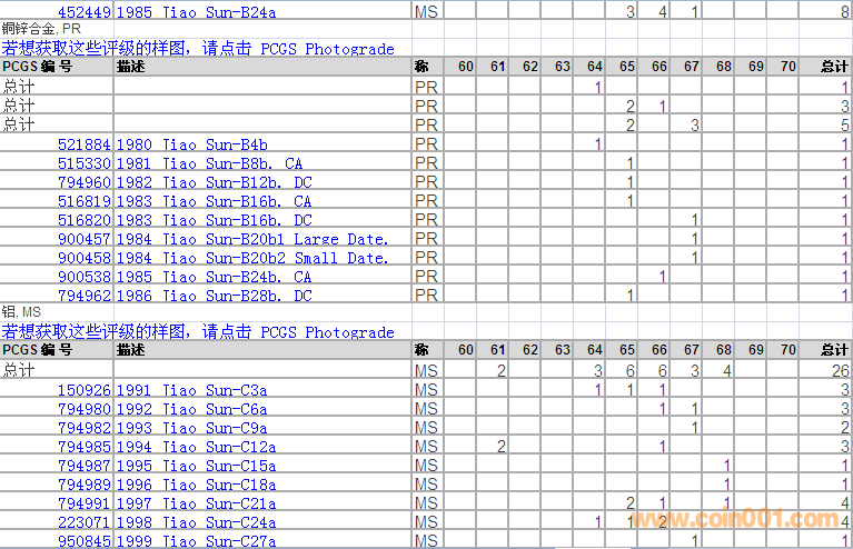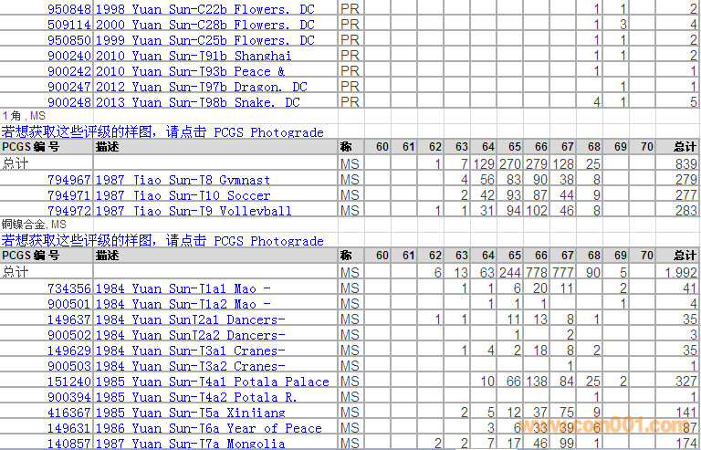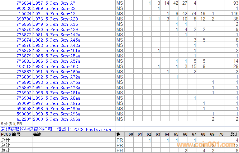 PCGS硬幣評級分?jǐn)?shù)分布 ..